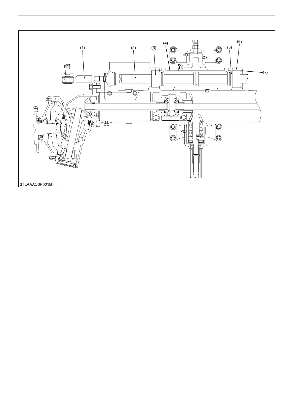 the front axle and connected to tie-rods. (The above figure is shown for 4 wheel drive model. Refer to TRACTOR