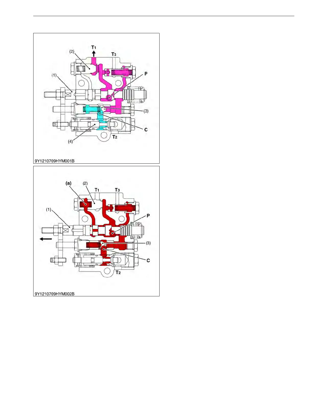 behind the poppet 1 (3), the oil in the hydraulic cylinder