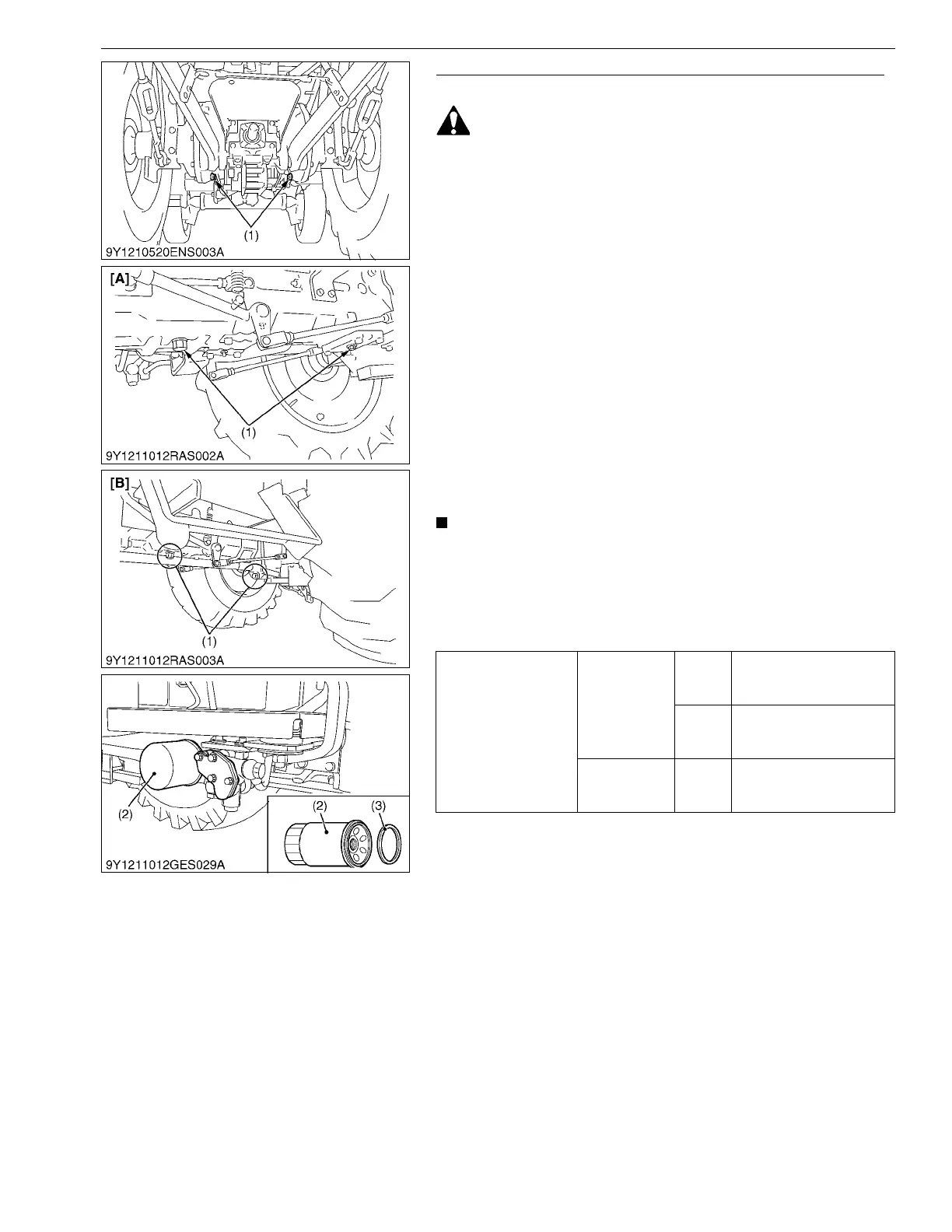 • Be sure to stop the engine before changing the oil filter