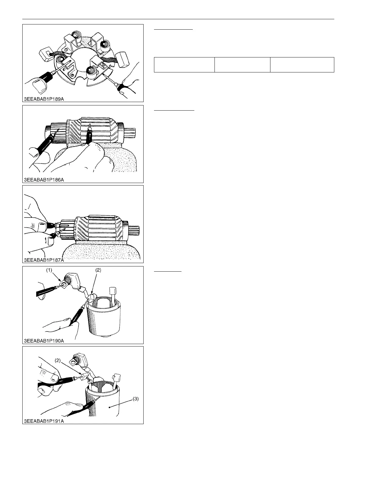 3. Check the continuity across the brush (2) and yoke (3) with an
