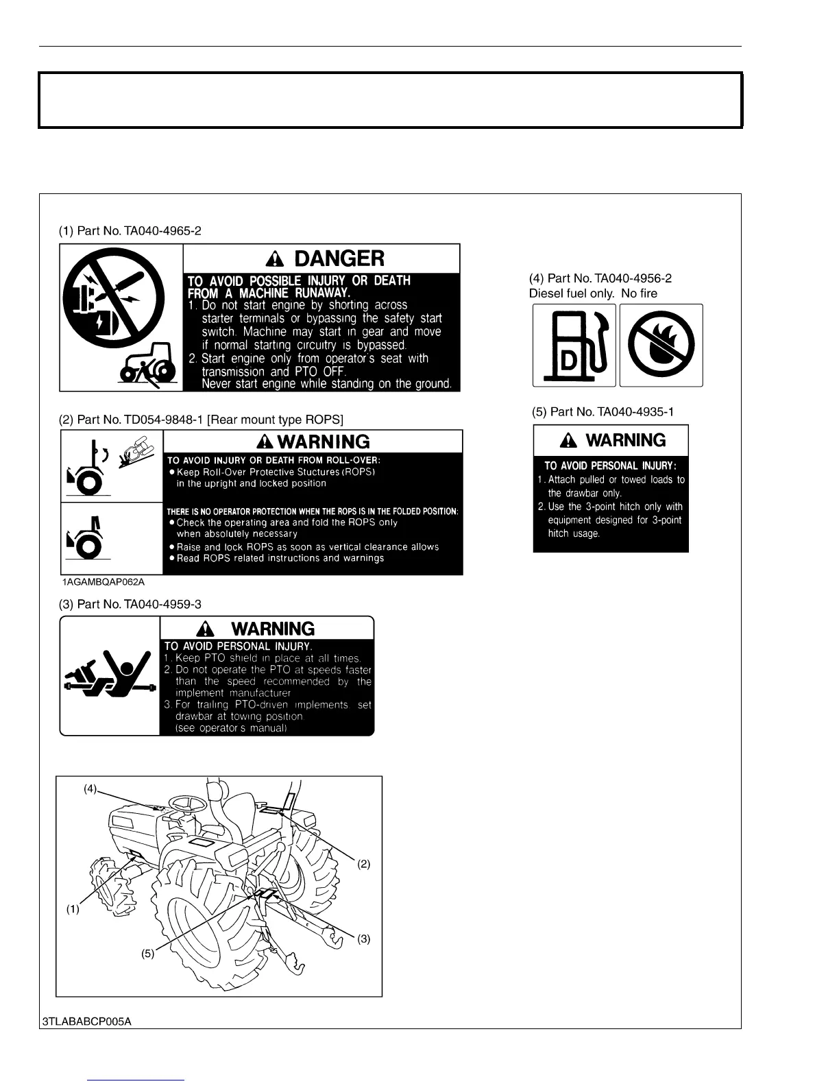 If a decal becomes damaged, illegible or is not on the machine, replace it. The decal part number is listed in