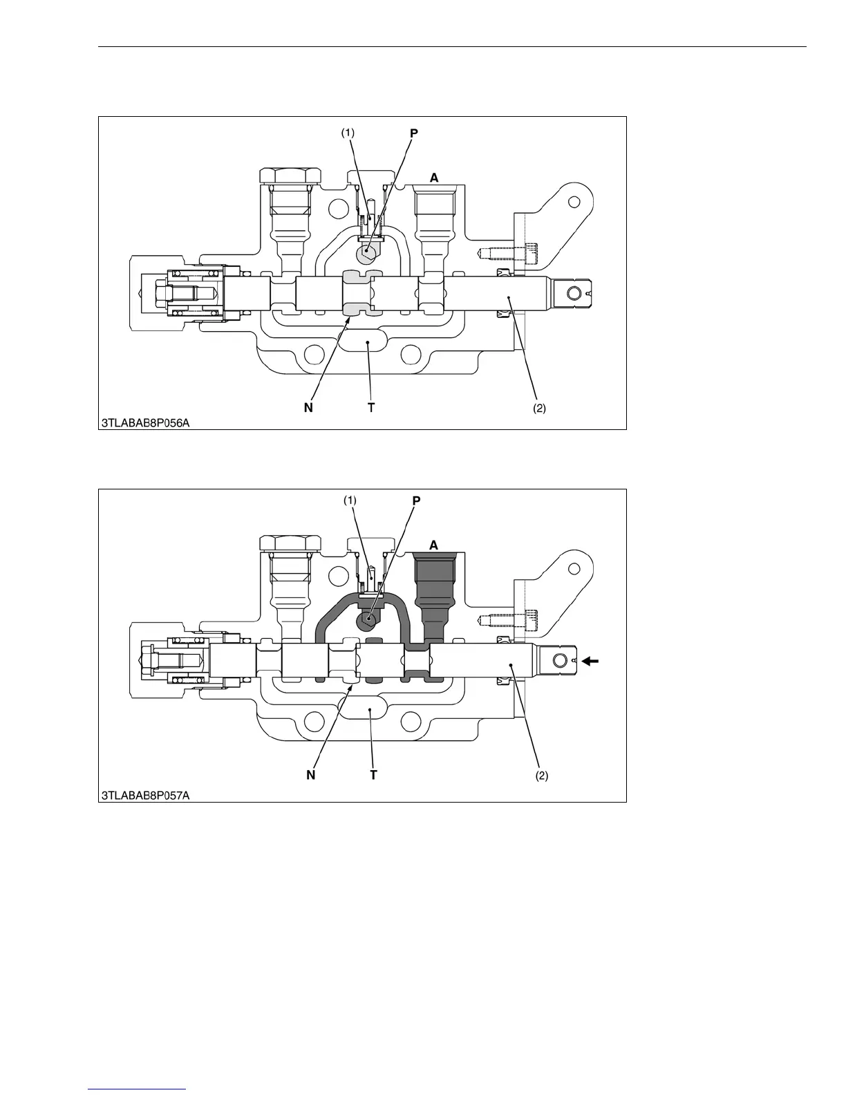 Pressure-fed oil from the hydraulic pump is delivered into the P port, and flows to the position control valve via N