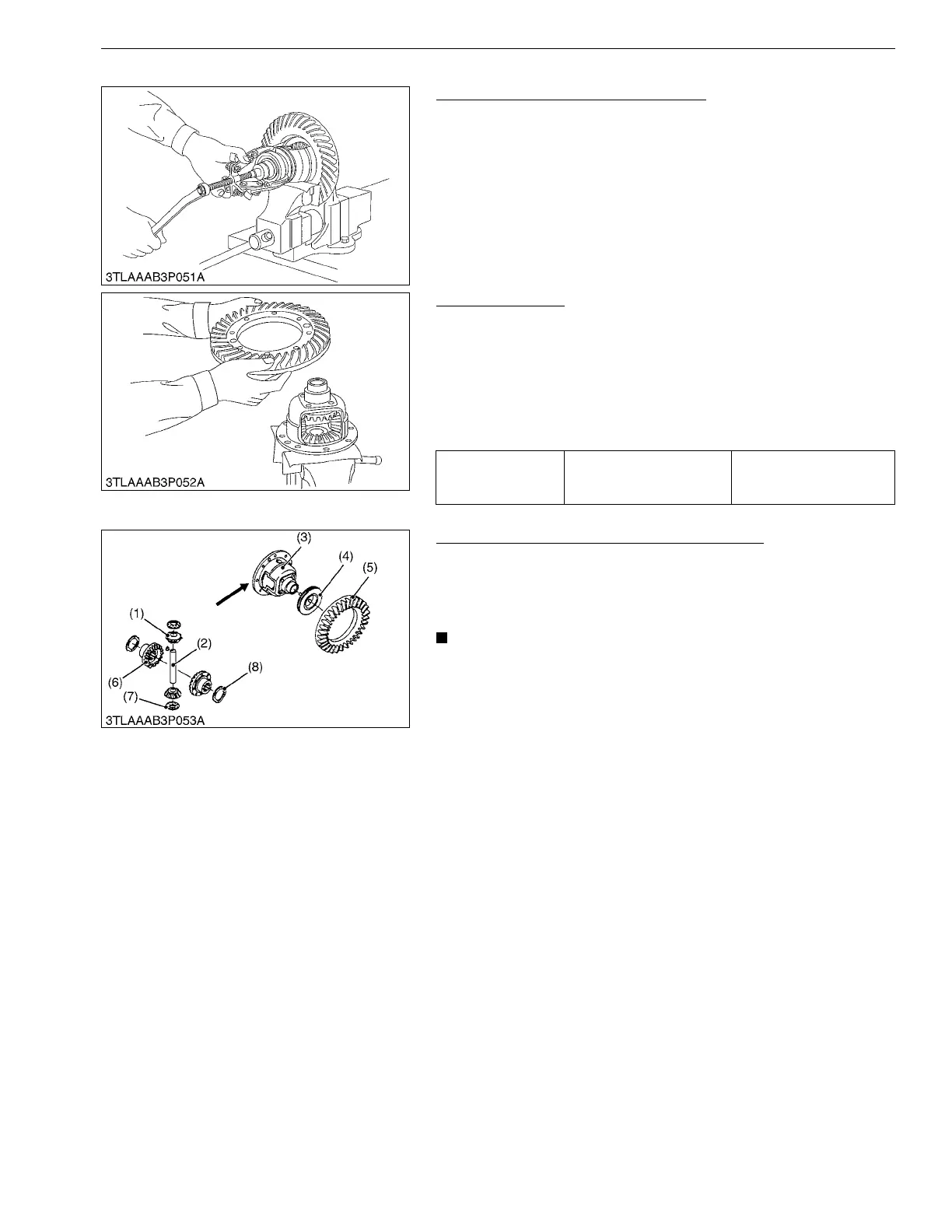 • Check the spiral bevel gear for wear or damage. If it is no longer