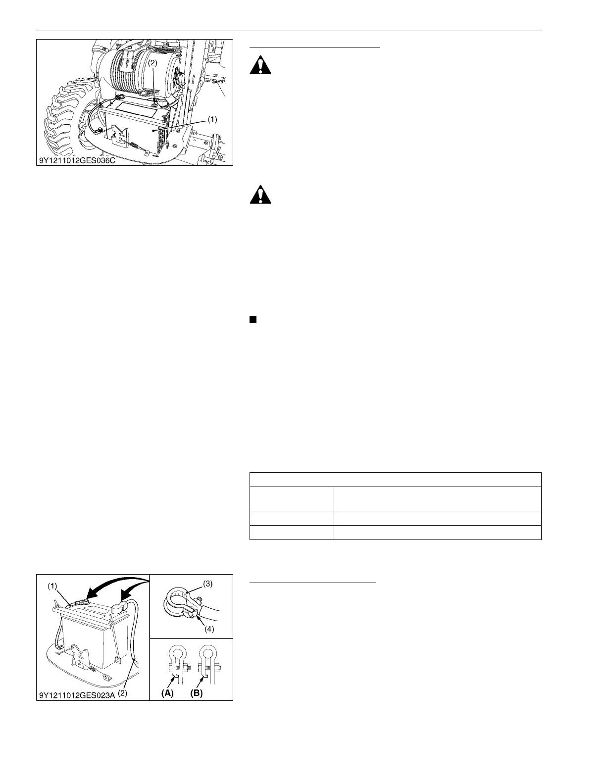 • Never remove the battery cap while the engine is running.