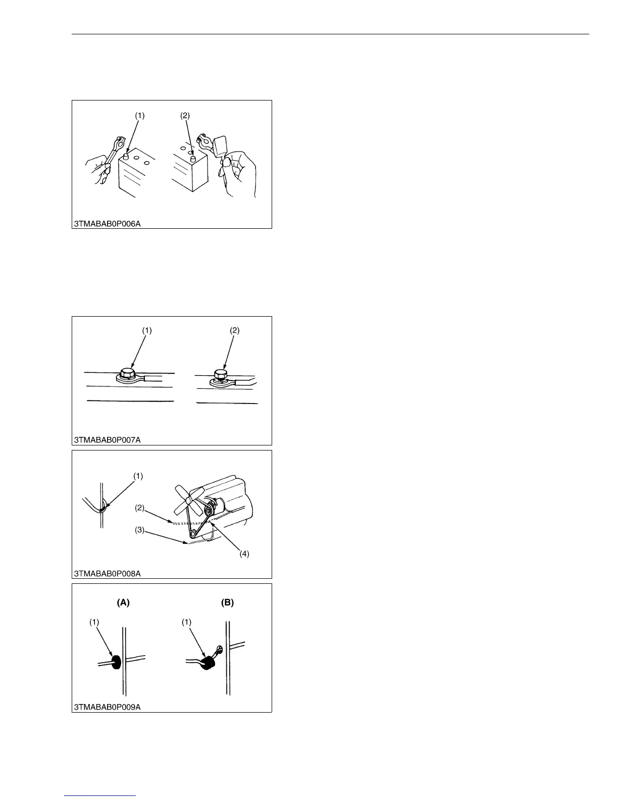 • When removing the battery cables, disconnect the negative