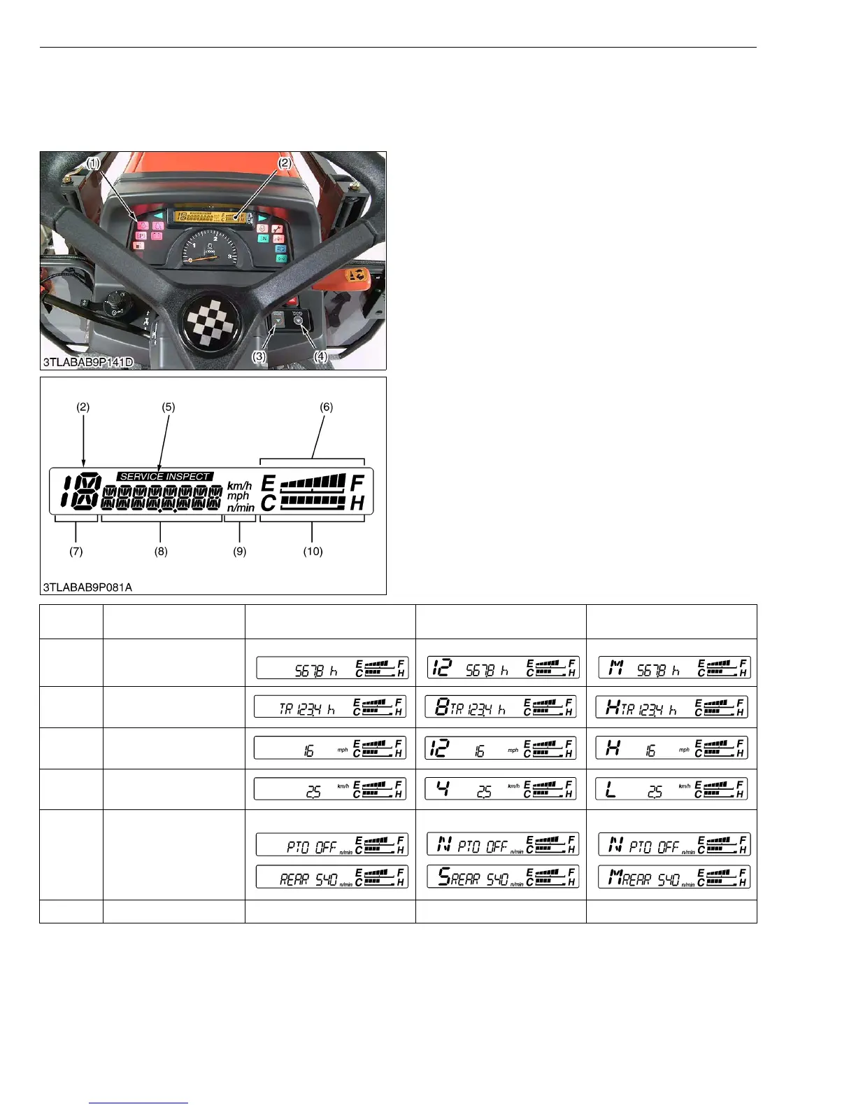 control lever, the PTO shaft stays off but the meter displays the rpm at the L position. This is normal, not