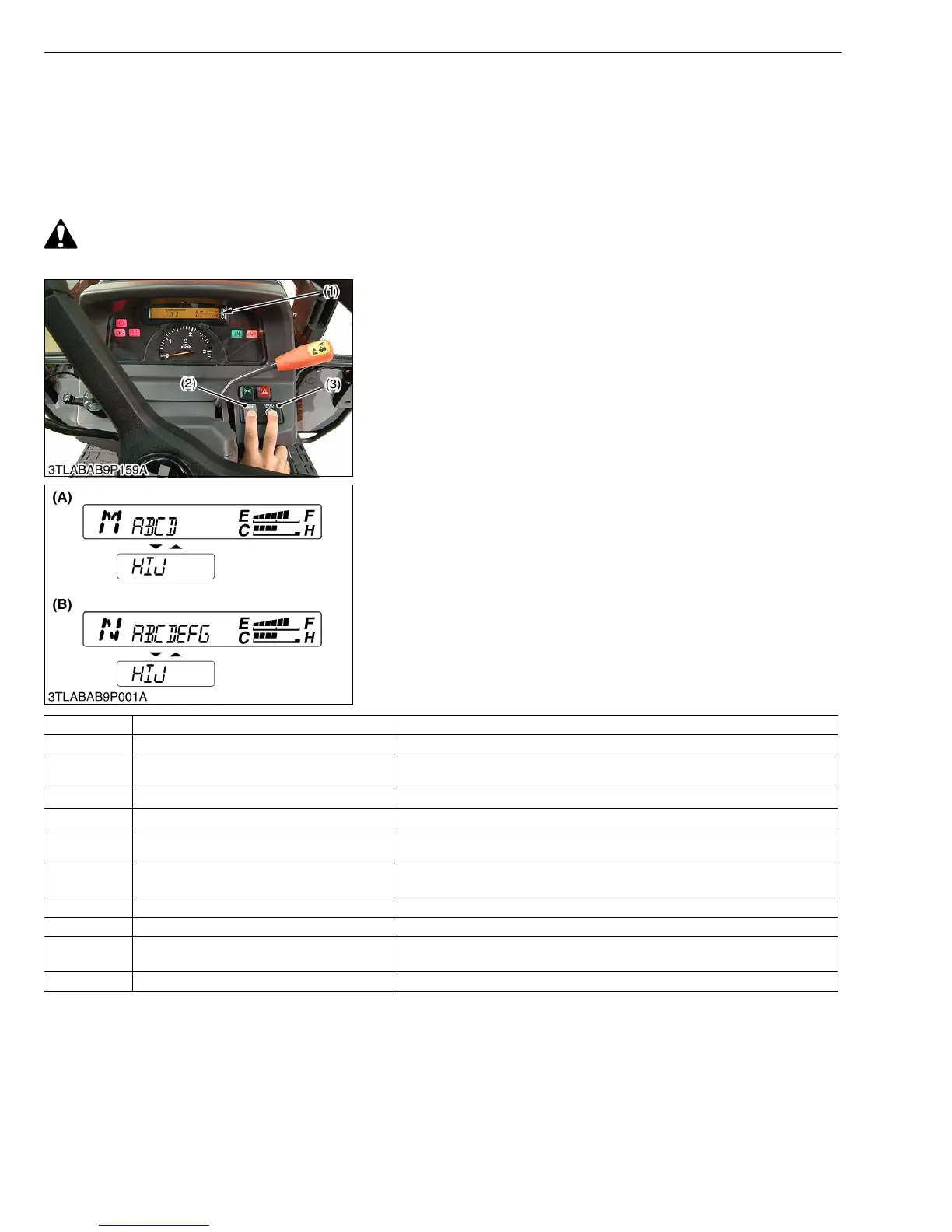 3. Press the display mode switch (2) and the flashing part moves.