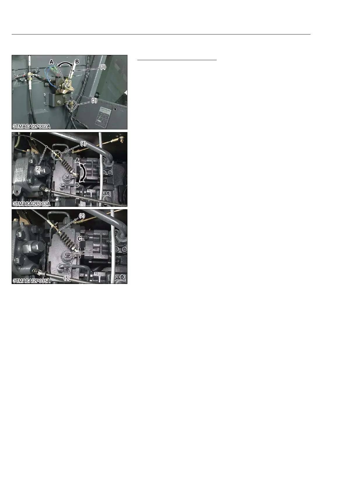 • The movement of PTO lever is adjusted with lock nut (4) of