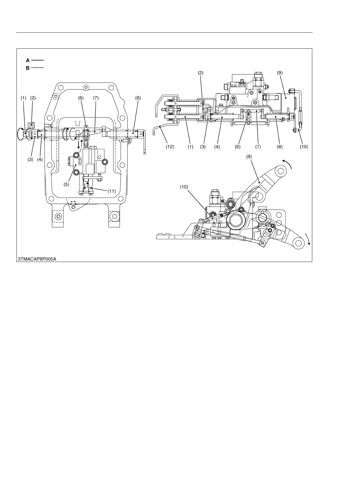1. When the position control lever (12) is moved to the "LIFT" position, the position lever shaft 1 (1) and position