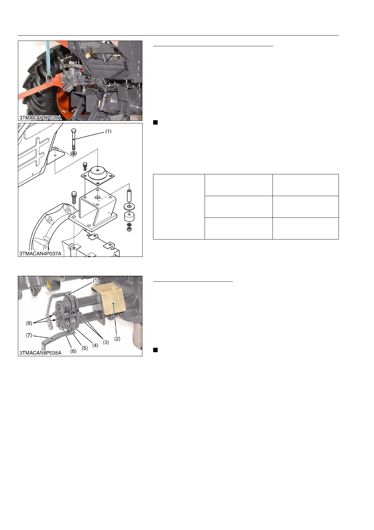 1. Remove the rear cabin mounting bolts (1) and lift up the cabin