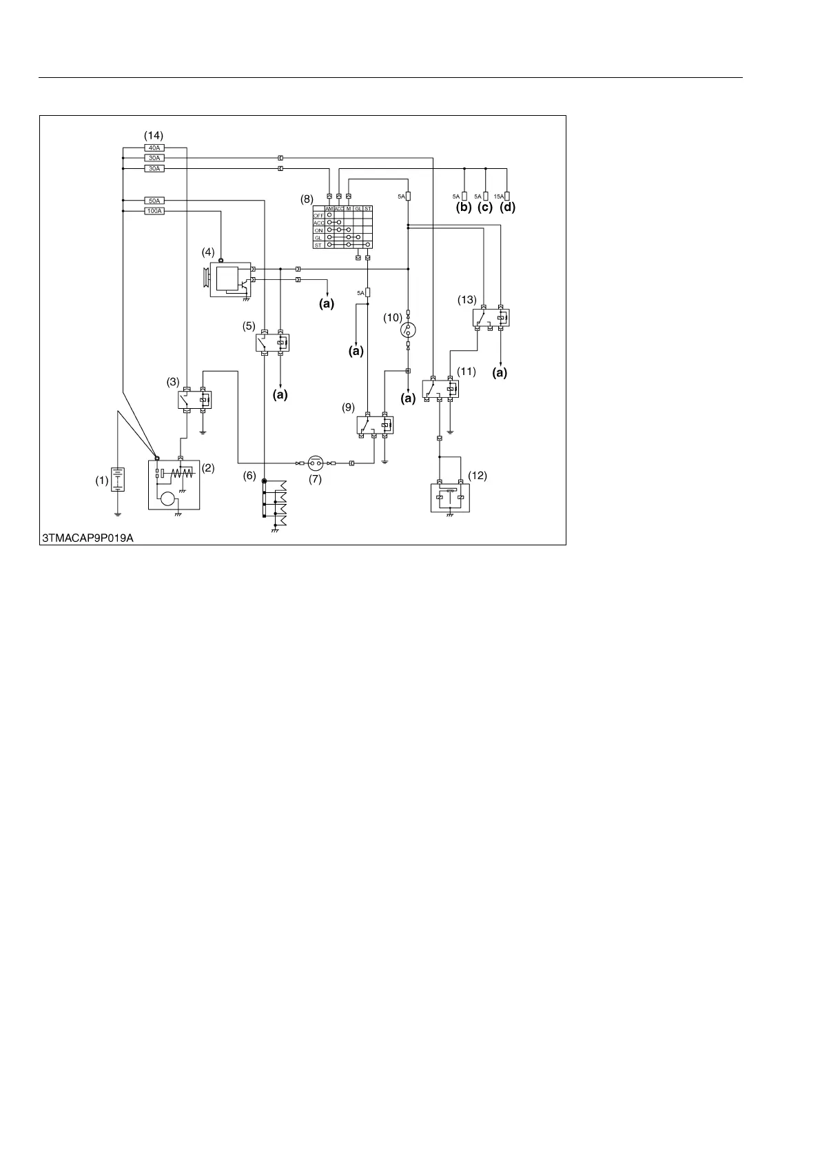 (7), (10), coil of starter relay (3), PTO safety relay (9). (When the PTO switches is set to "OFF", battery current flows