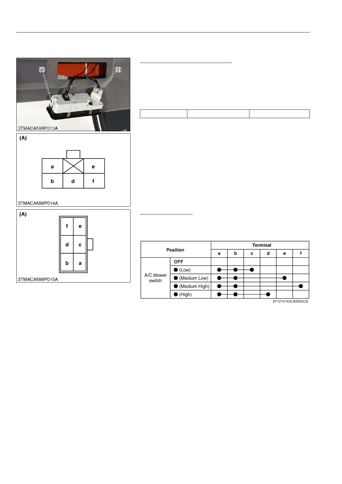 1. Disconnect the 6P connector (2) from blower switch.