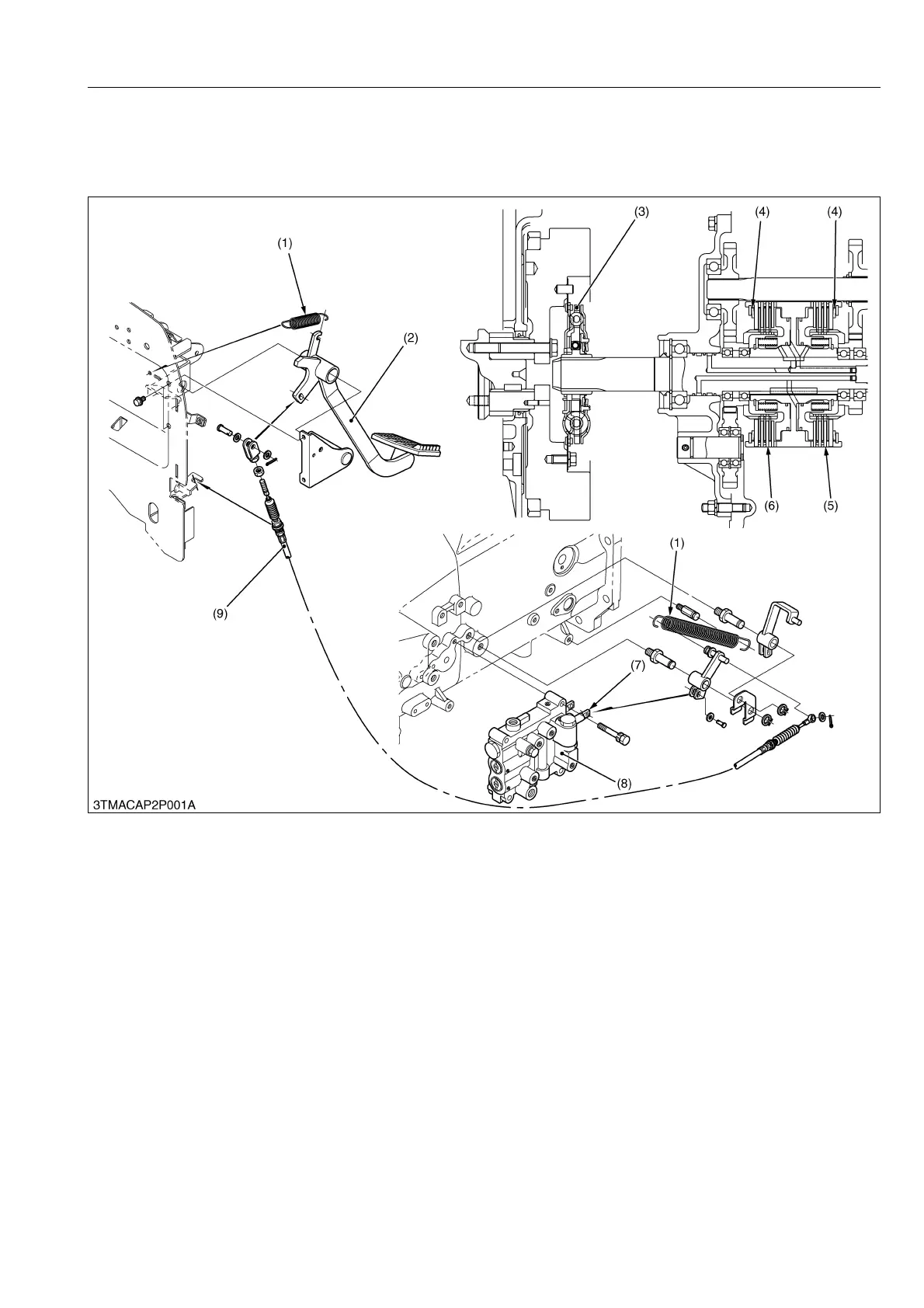 the clutch pedal (2) is depressed, the clutch spool of shuttle valve (8) moves via the clutch cable (9).