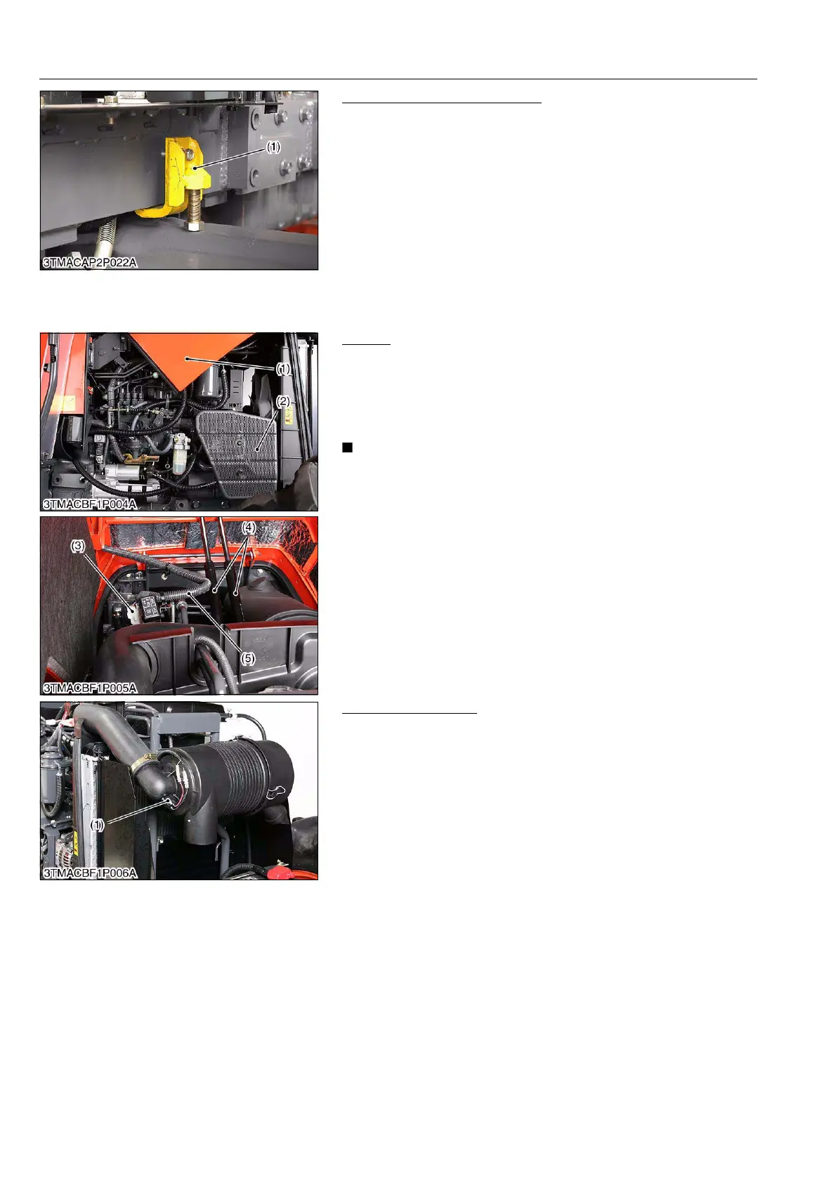 4. Remove the bonnet (1) and side cover (2) for both side.