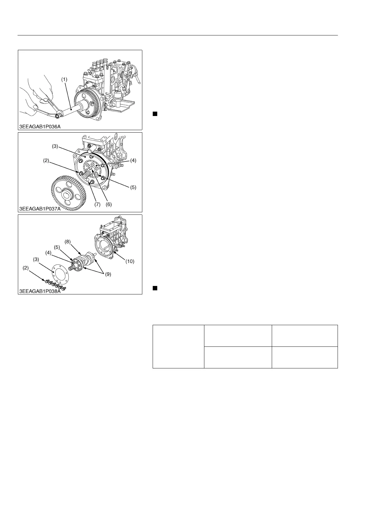 • Install the fuel camshaft and bearings (9) to the injection pump