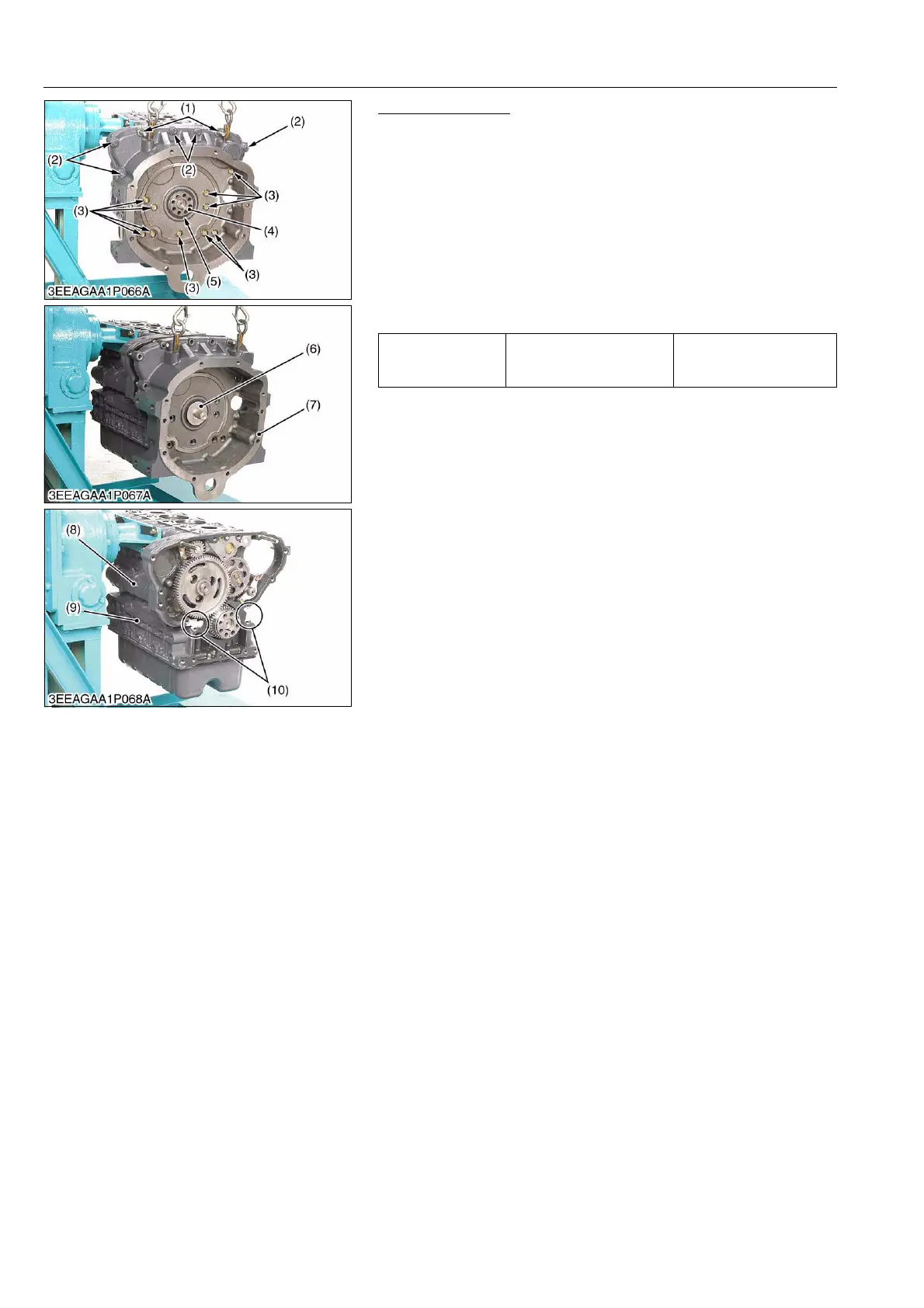 • Set the flywheel housing guide jig (6) to the crankshaft gear (4).