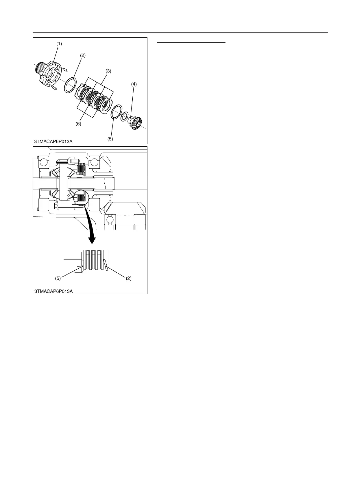 1. Draw out the LSD side gear (4), LSD shim (5), steel plates (3),