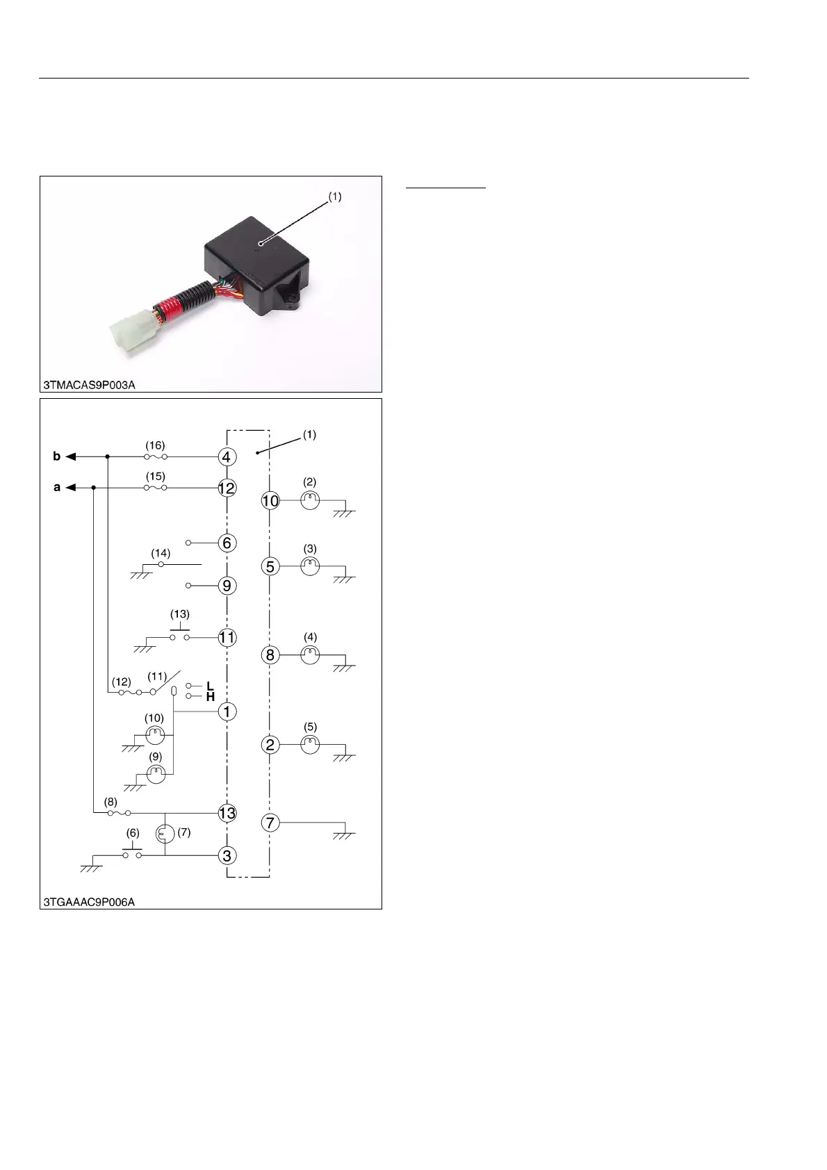 1. The flasher unit blinks the turn signal light (3), (4) and