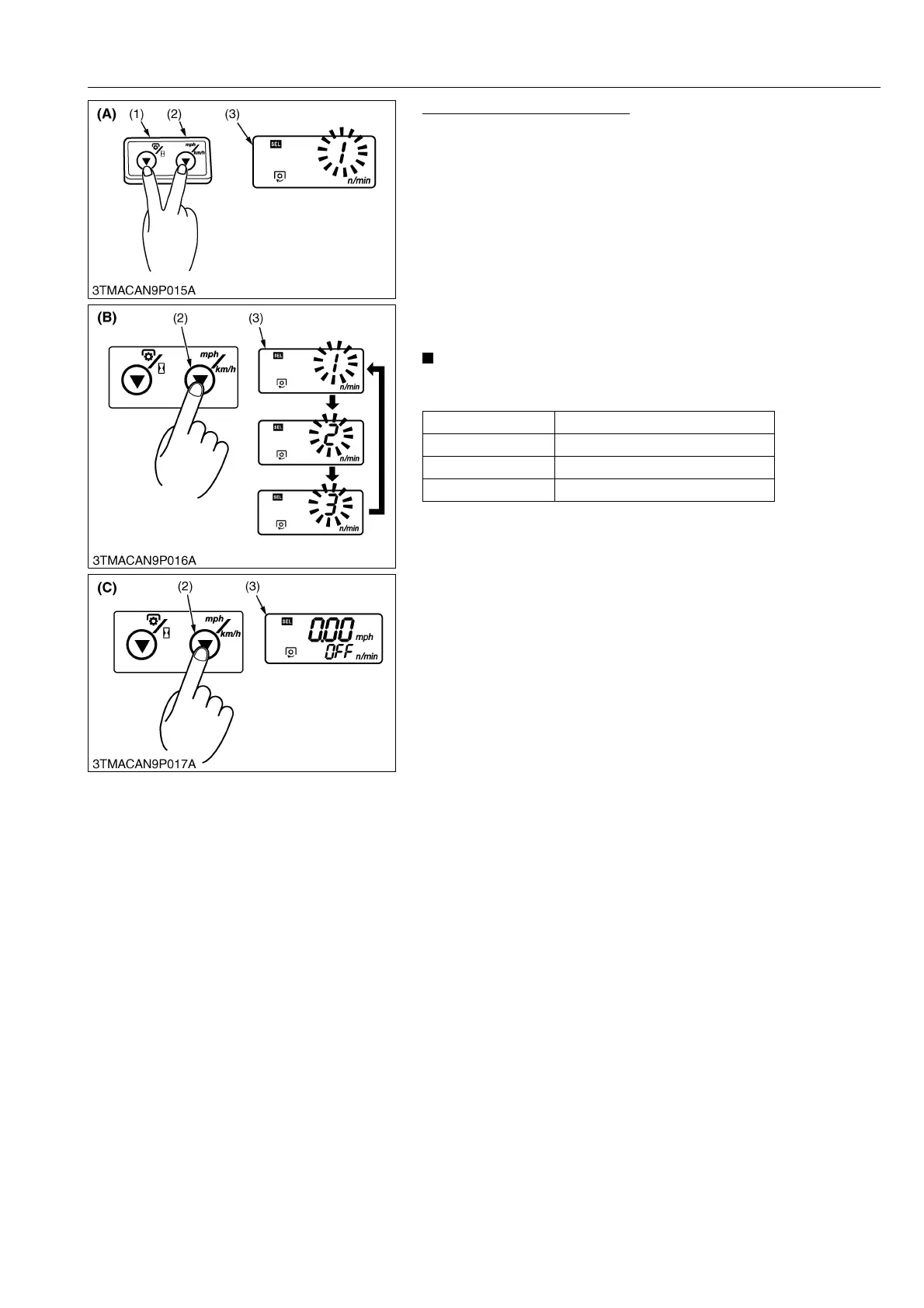 (3) goes back to the PTO speed display or hour meter display