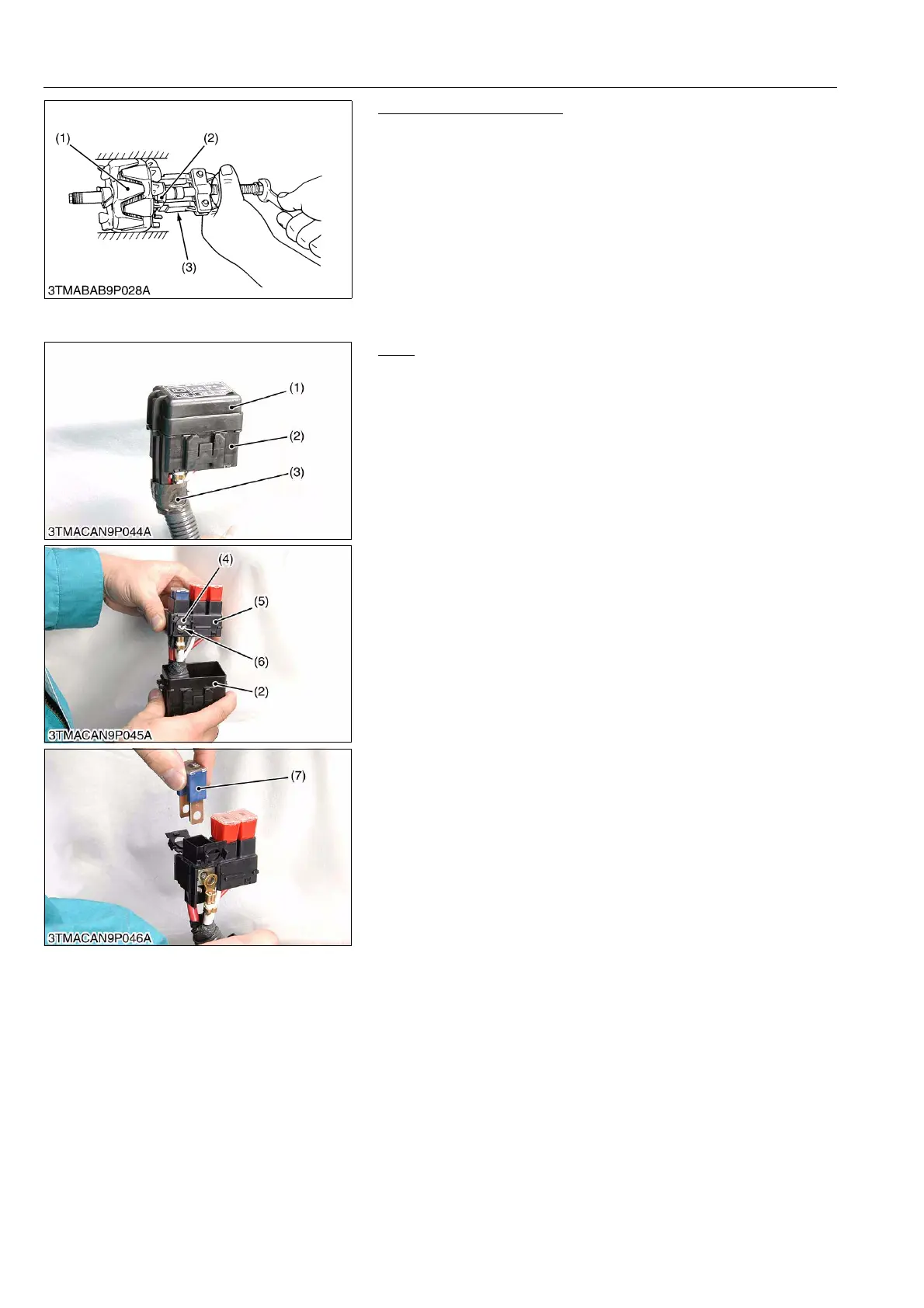 3. Draw out the fuse stay (5) from the fuse box (2).