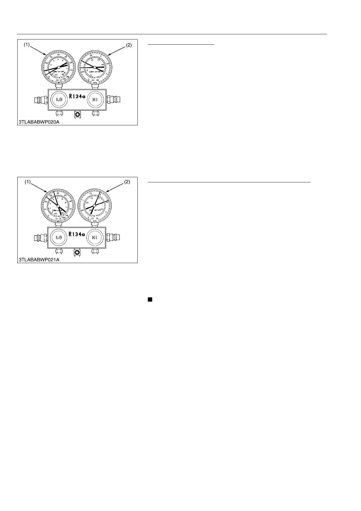 • Both LO and HI pressure side (1), (2) pressures too low.