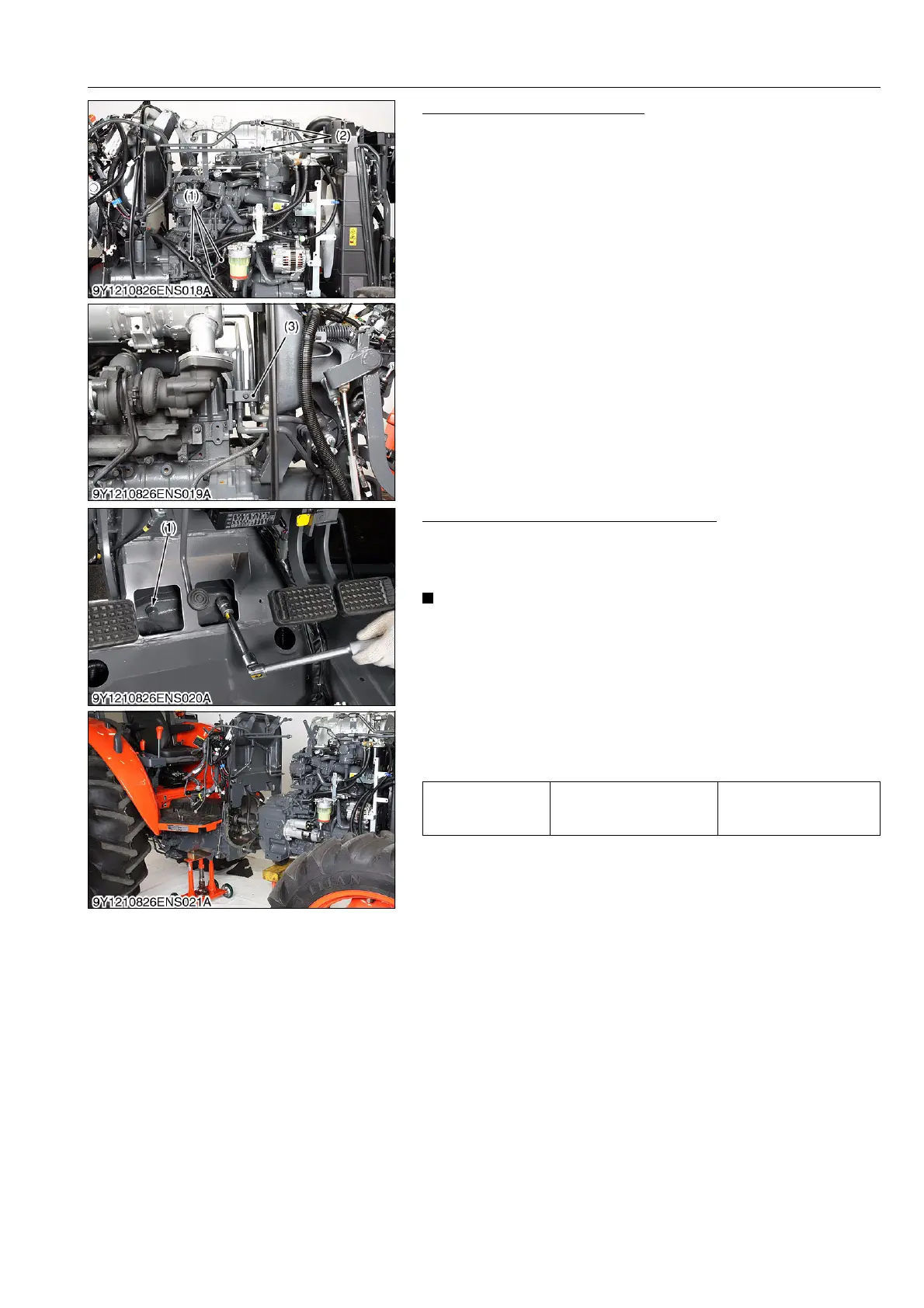 2. Remove the engine mounting screws and nut (1), and separate