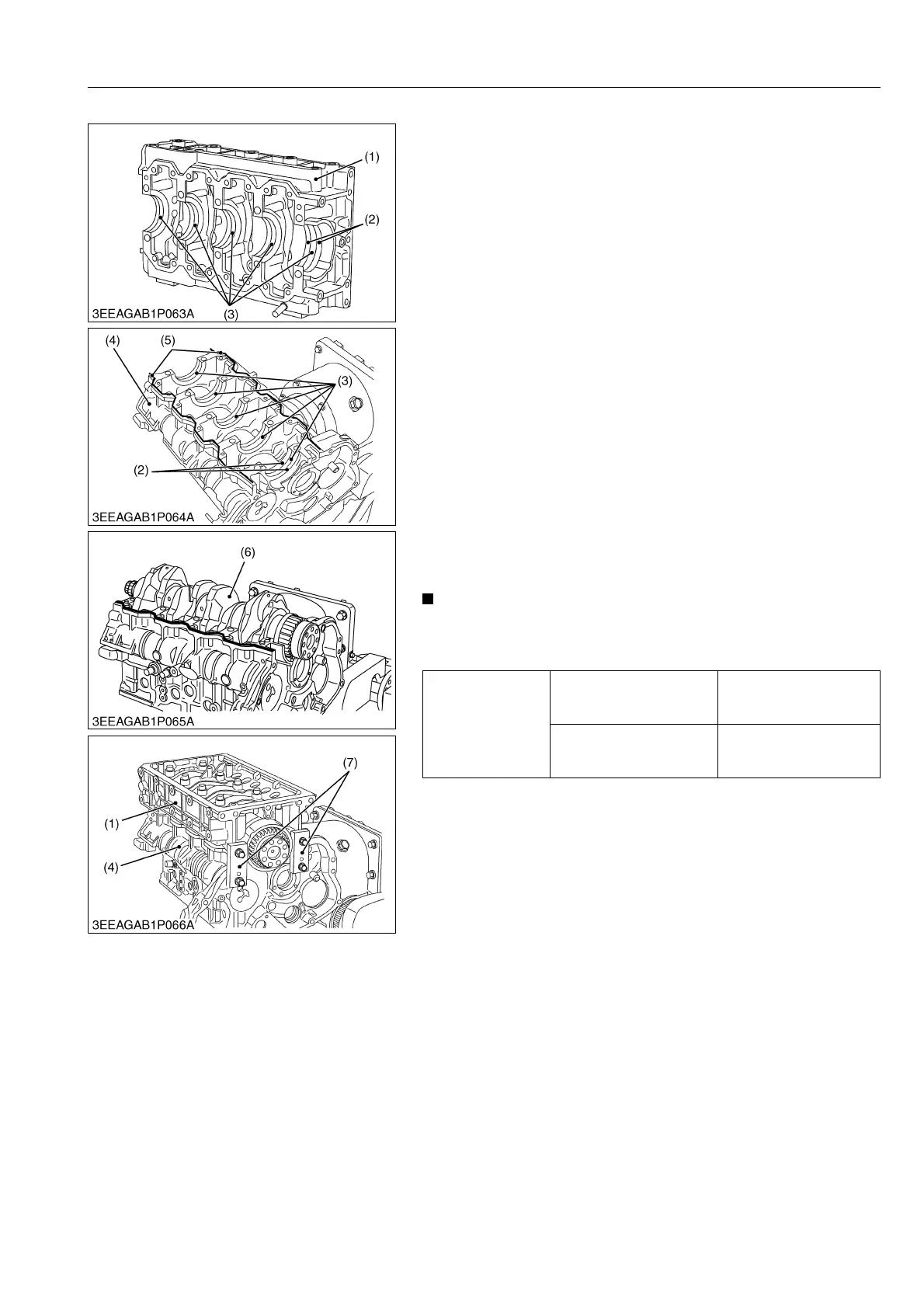 • Apply oil to the thrust bearing and set the crankshaft (6).