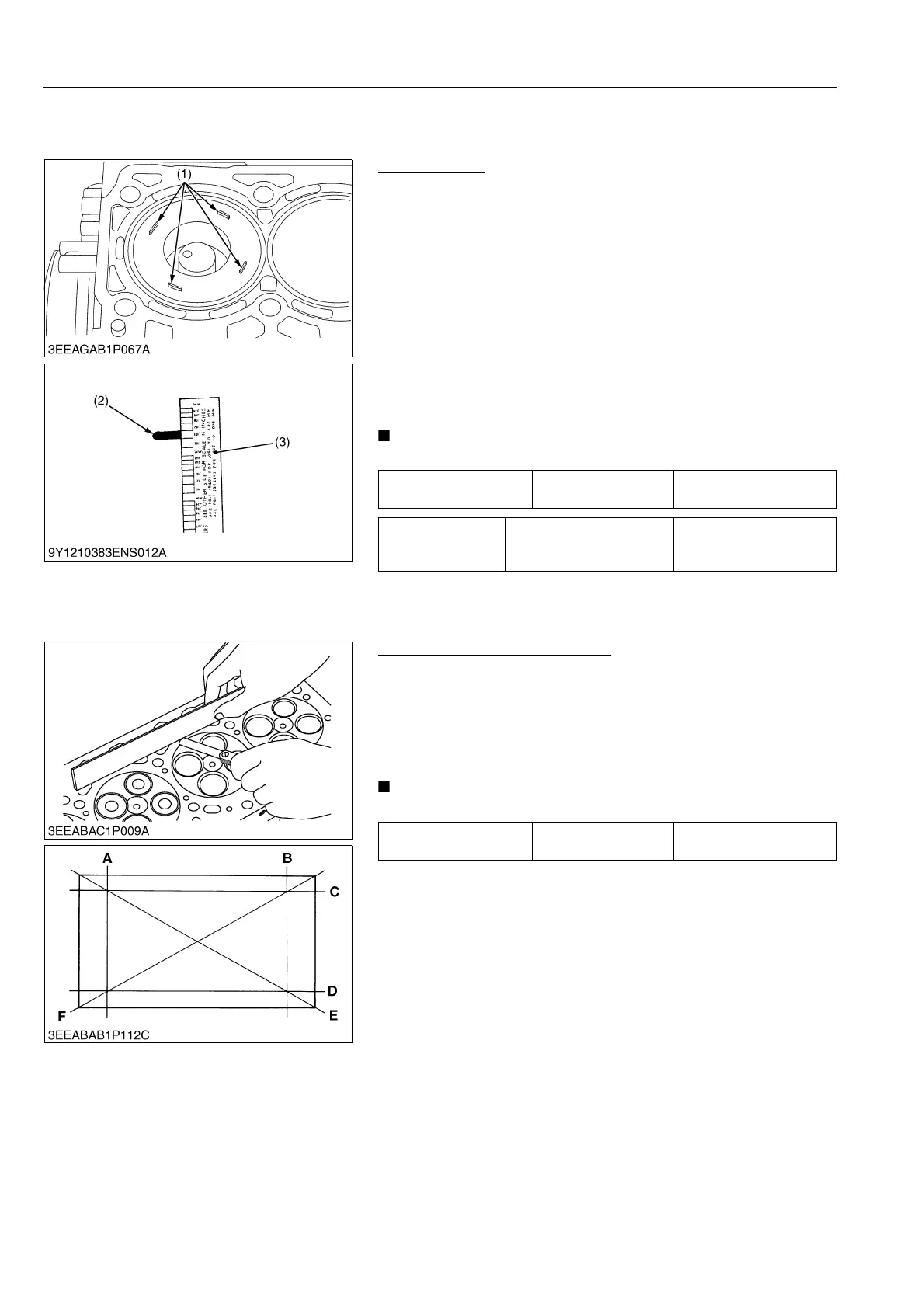 2. Place a straightedge on the cylinder head's four sides "A", "B",