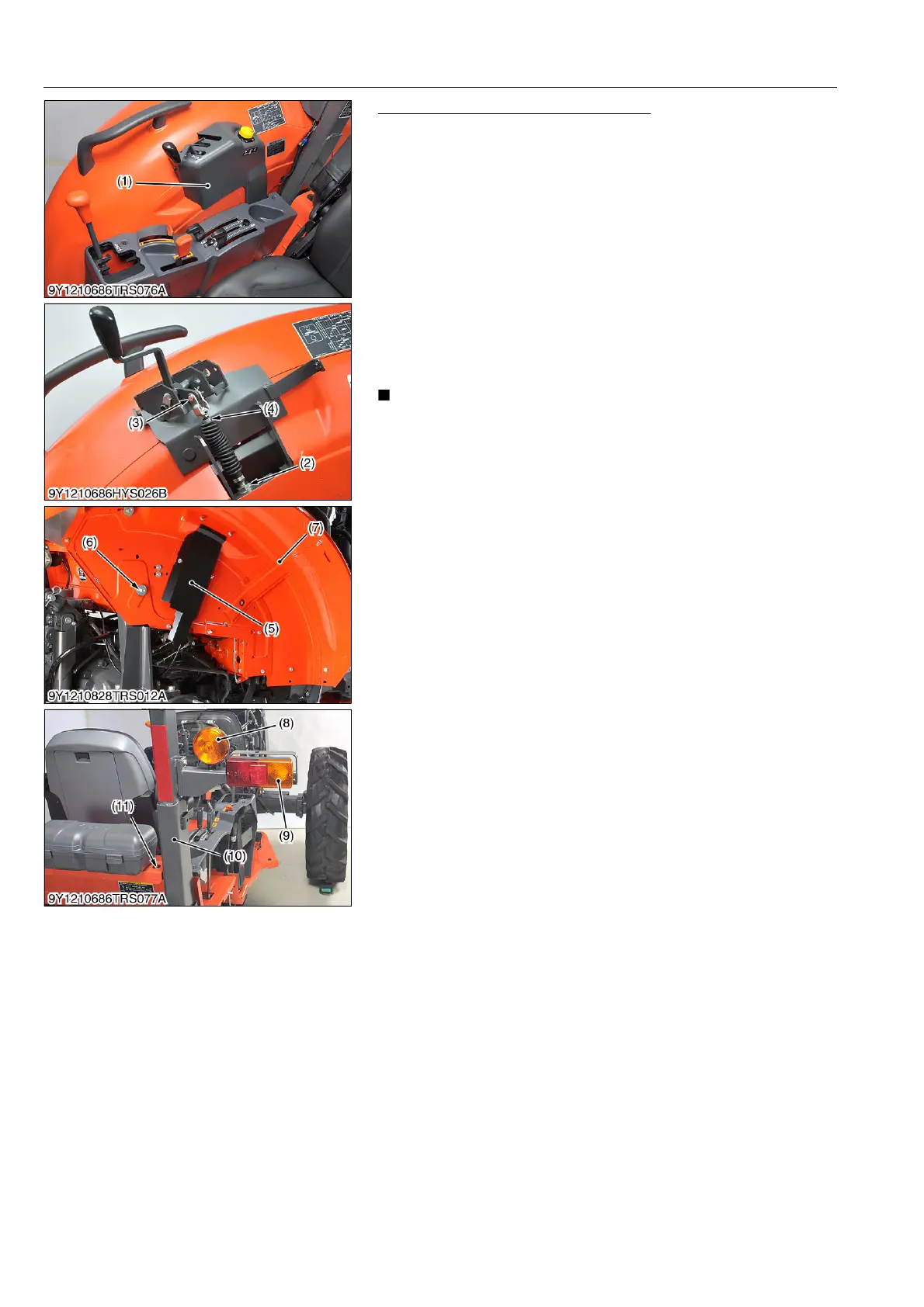 7. Remove the screw (11) and then remove the ROPS under (10).