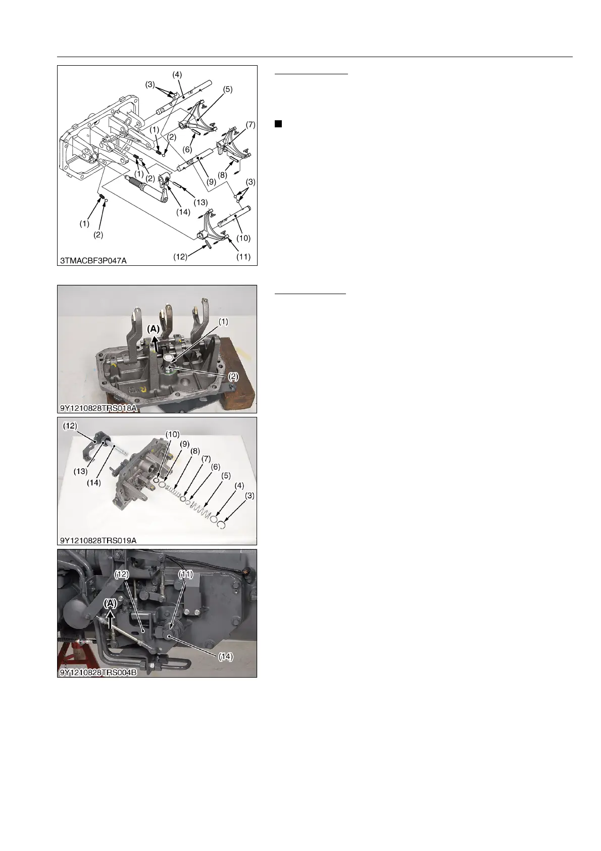 2. Remove the roll pin (13) and (8), fork rod (9) and 3rd-4th fork (7).
