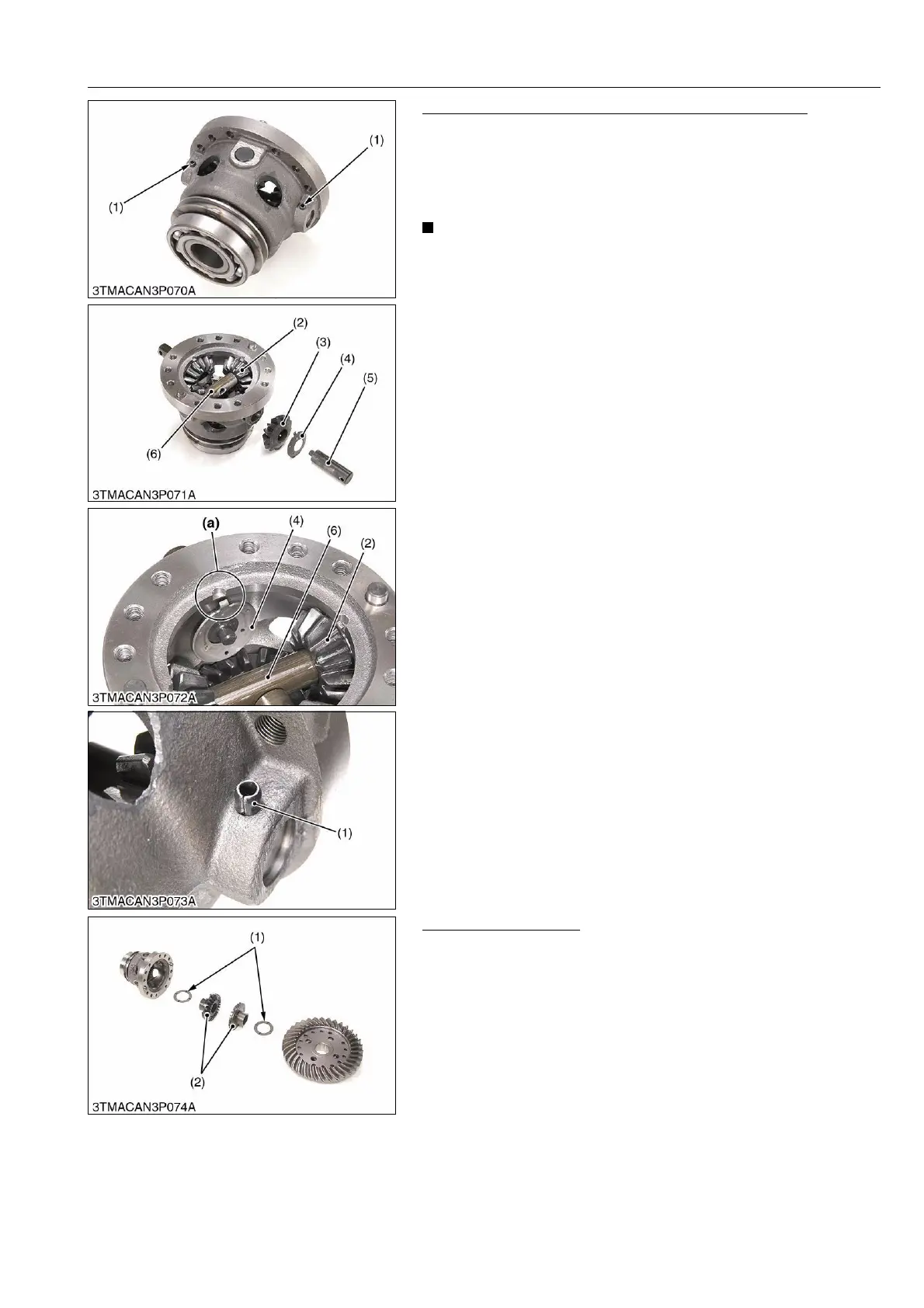 • Check the differential pinion gear (2), (3), and pinion shaft (6),