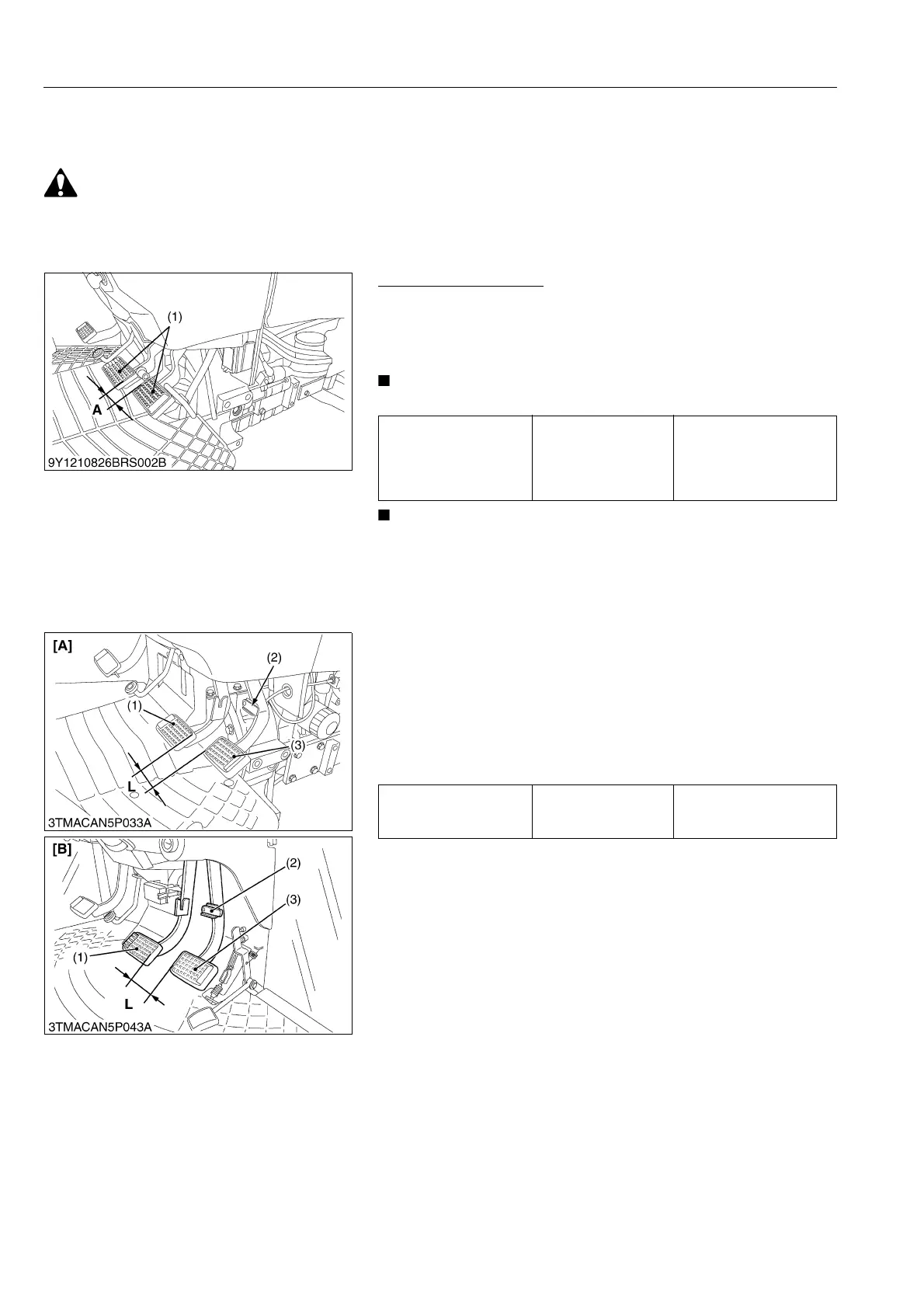 • Keep the free travel in the right and left brake pedals equal.