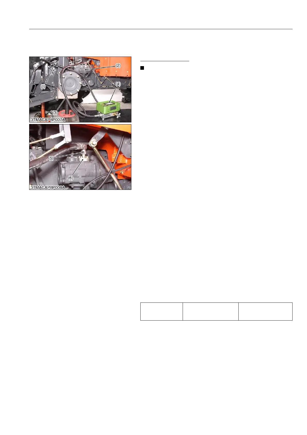 7. Connect the hydraulic test hose (3) to the adaptor at hydraulic