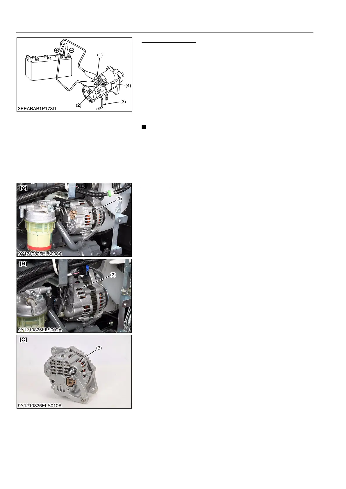4. Disconnect the connecting lead (3) from the starter terminal C