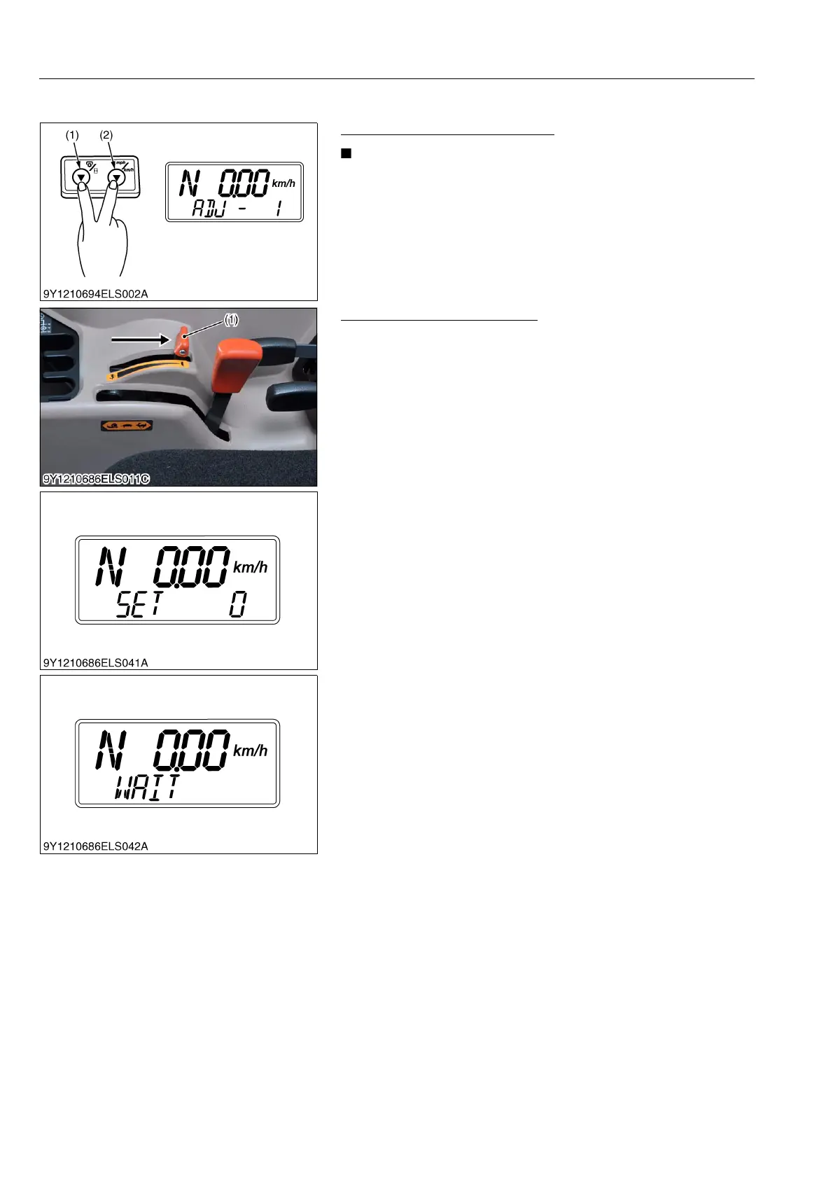 (1) PTO/Hour Meter Select Switch (2) Traveling Speed Select Switch