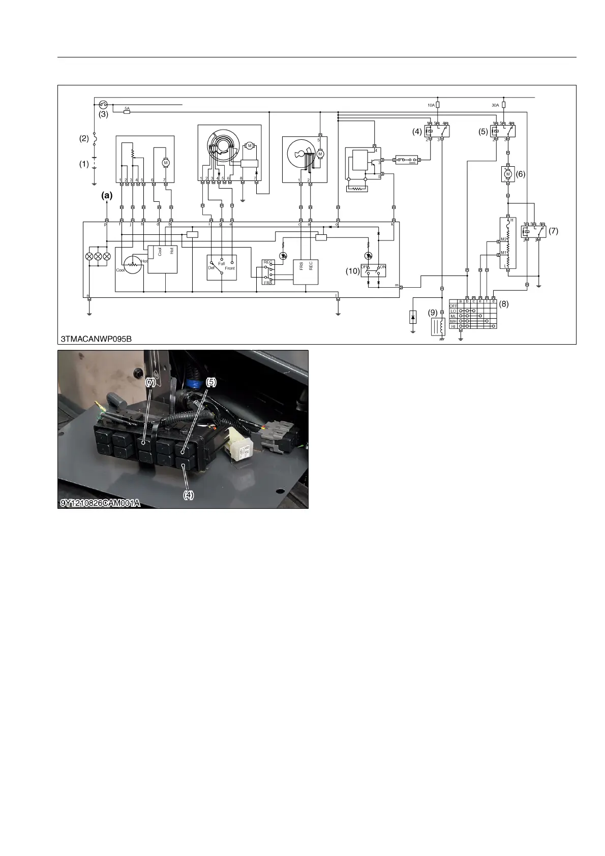 relay (5), blower high relay (7) and compressor relay (4).