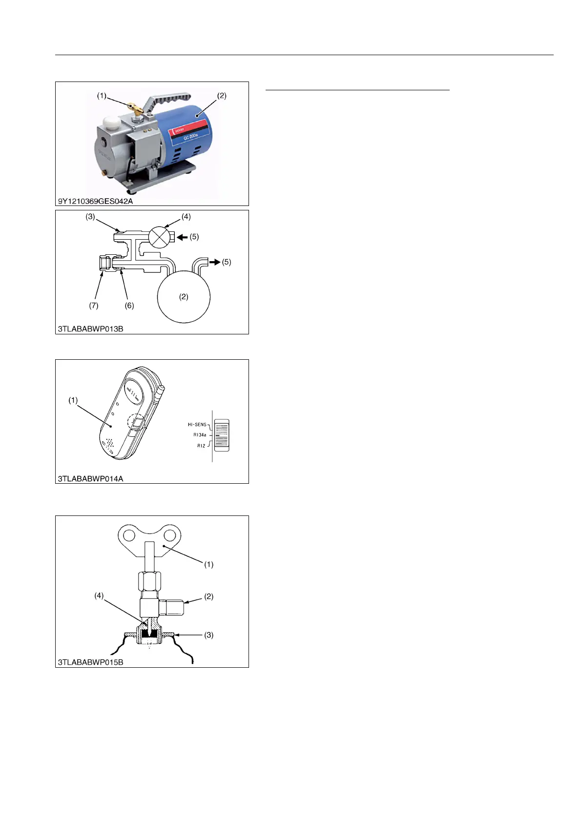 6. To charge the refrigerant into the system, turn the handle (1)