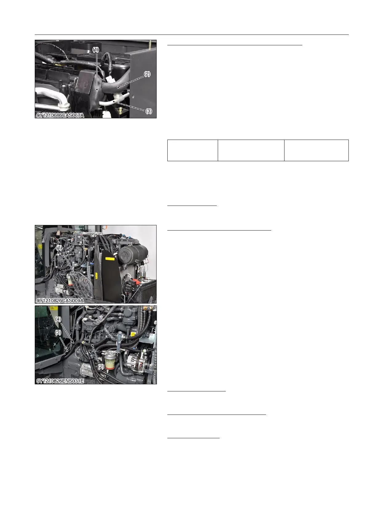 2. Disconnect the heater hoses (2) and (3) from the engine.