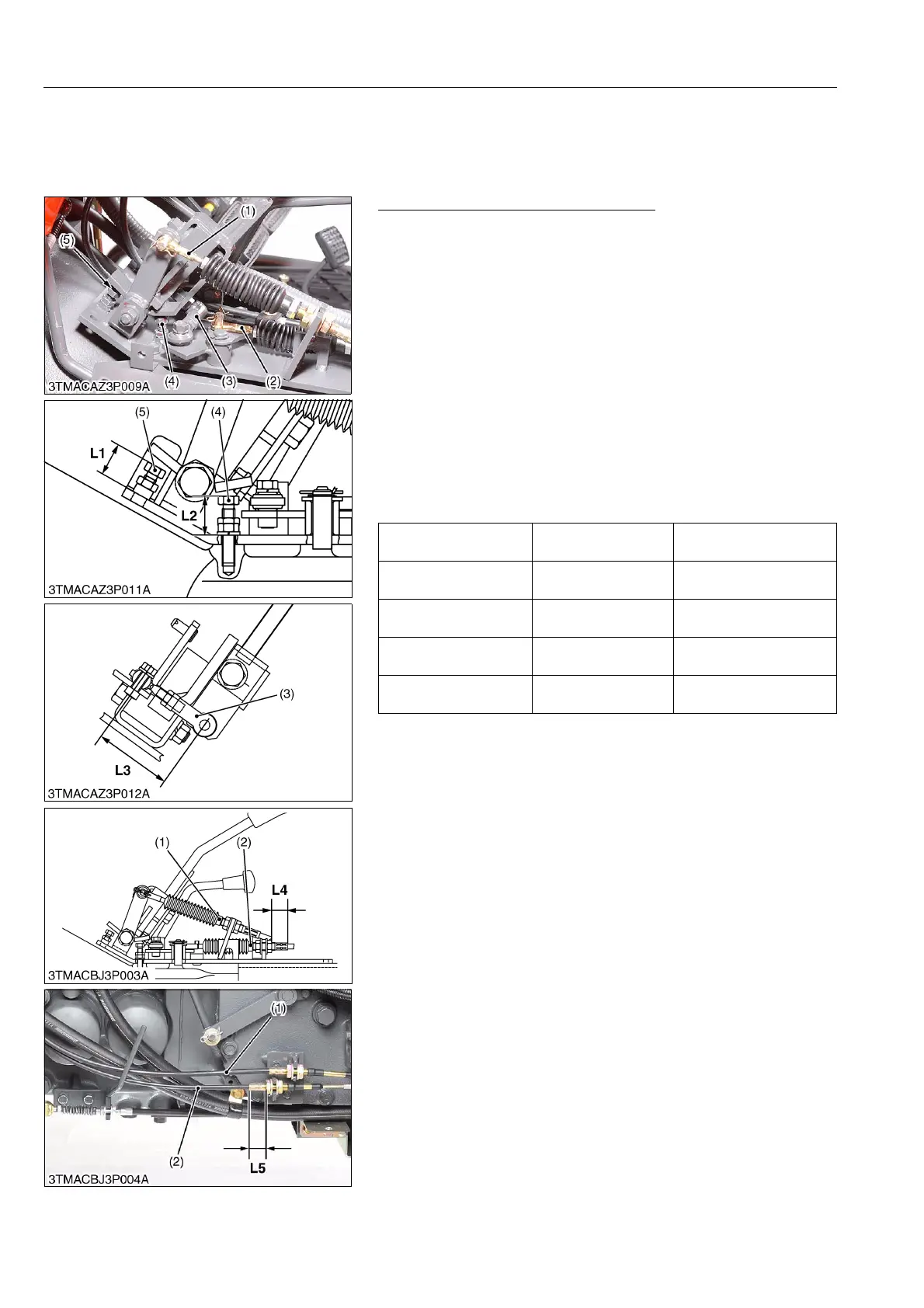 Adjust the select cable (2) retaining position "L4" and "L5" for