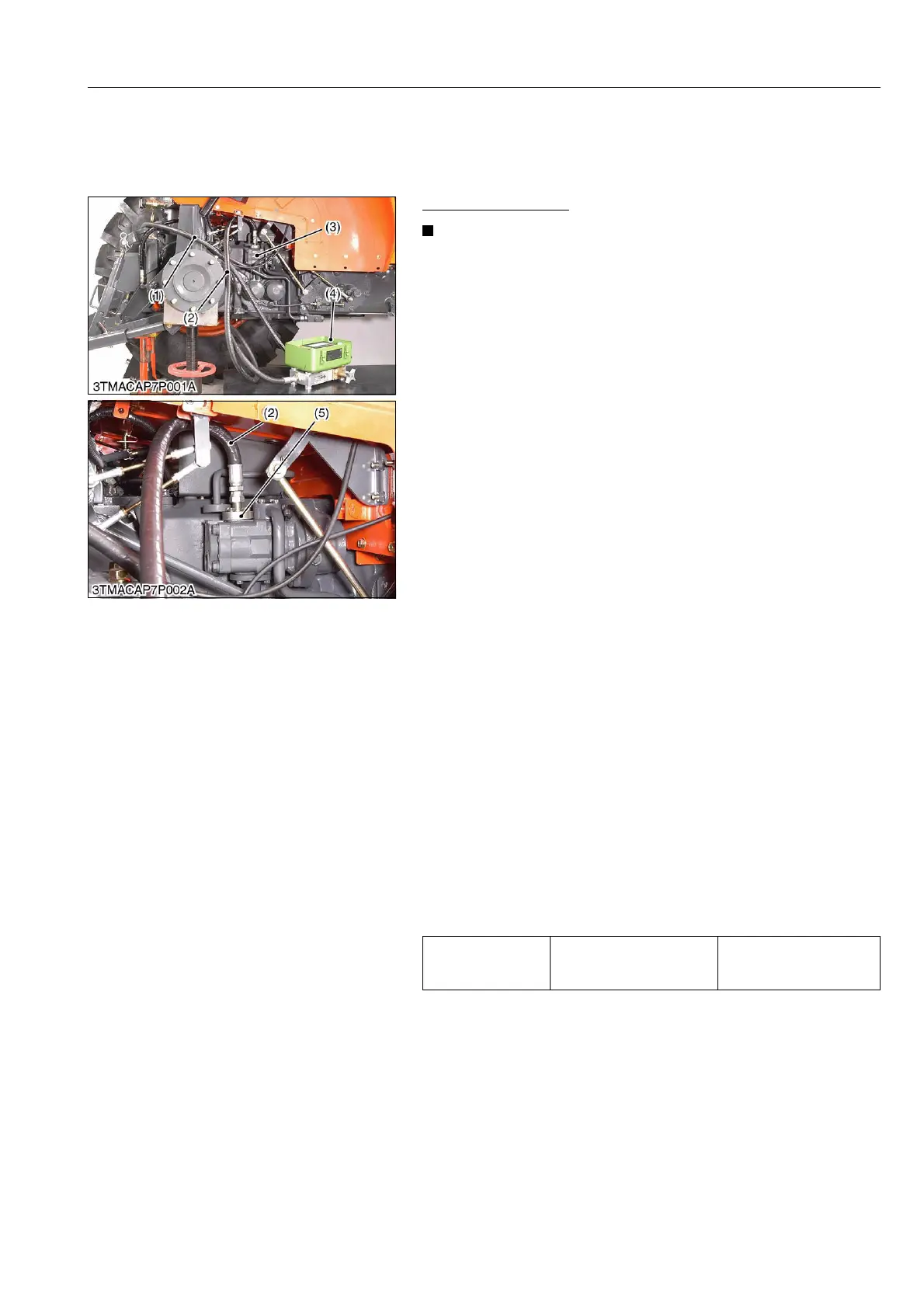 7. Connect the hydraulic test hose (2) to the adaptor at hydraulic