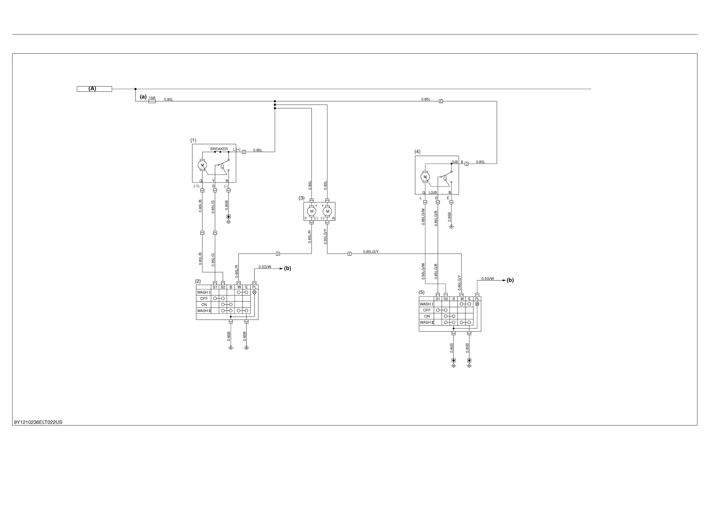(3) Washer Motor (4) Rear Wiper Motor (Option) (5) Rear Wiper Switch (Option) (A) Key ACC (a) Fuse (Wiper)
