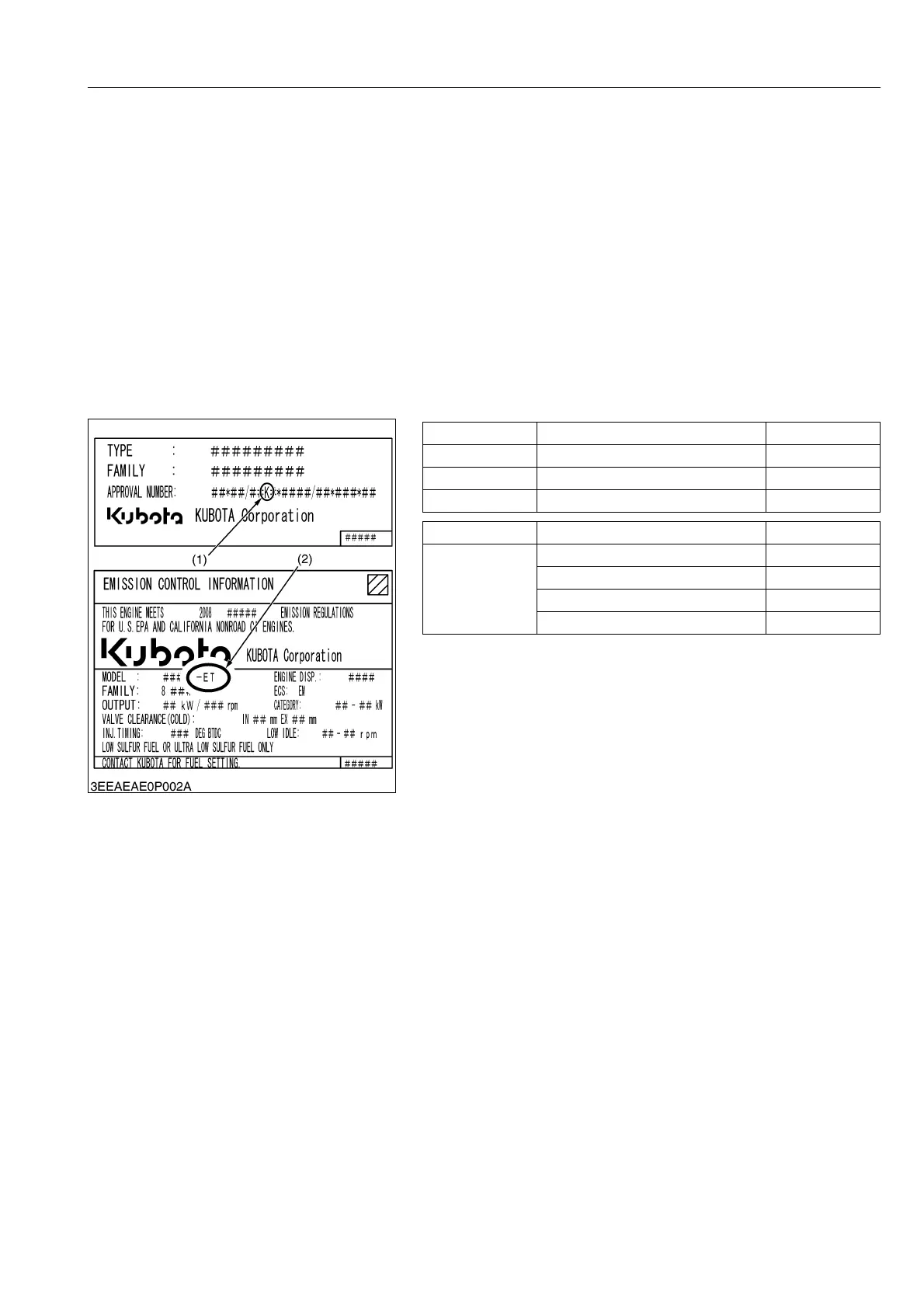 respective countries affected by Non-Road Emission regulations. For KUBOTA Engines, E3 will be the designation