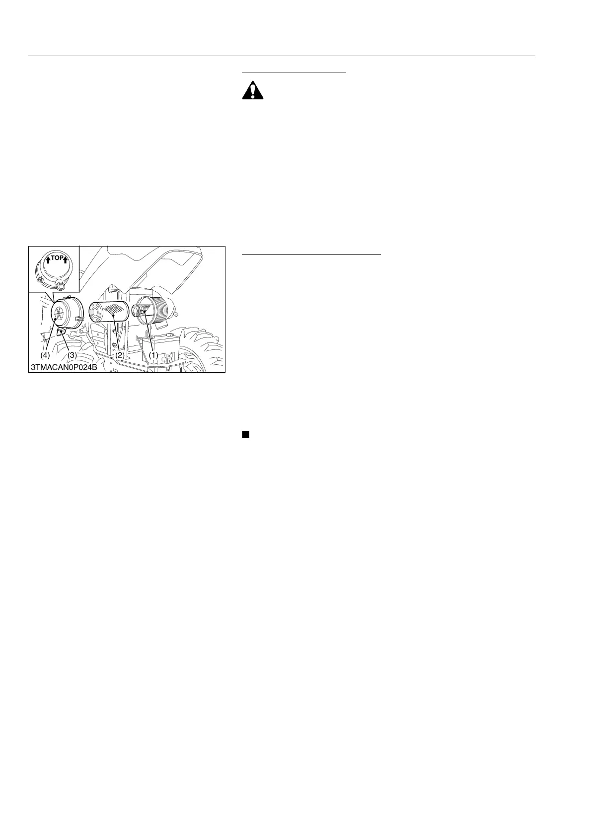 • Do not run the engine with filter element removed.