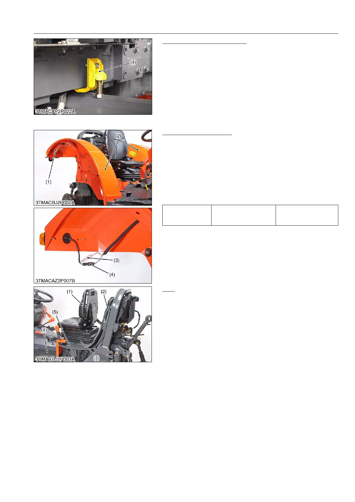 • Install the front axle rocking restrictor (1) (refer to "8. SPECIAL