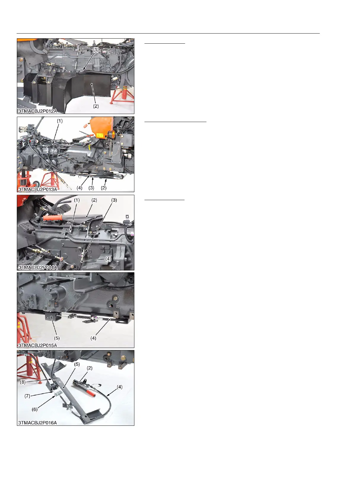 1. Remove the hydraulic outlet hose (3) and (4) with hose support