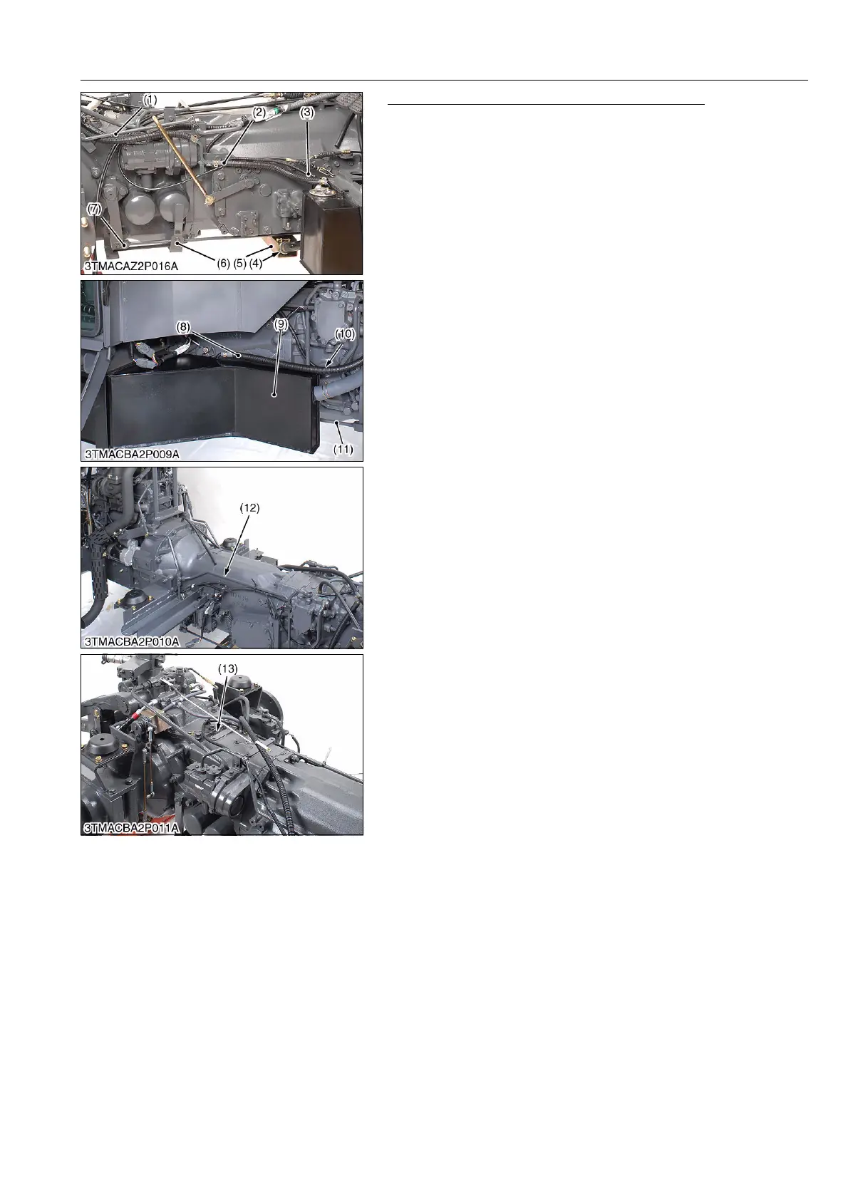 2. Remove the protector (6), parking brake rod R.H. (7) and rear