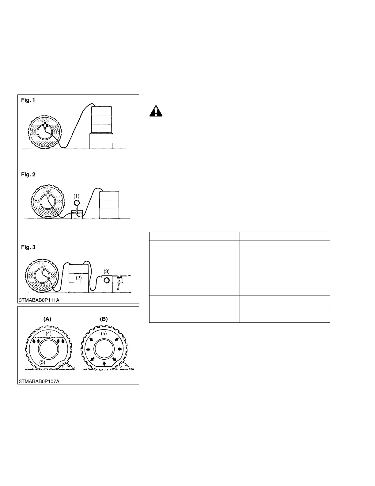 • Do not fill tires with water or solution more than 75 % of full