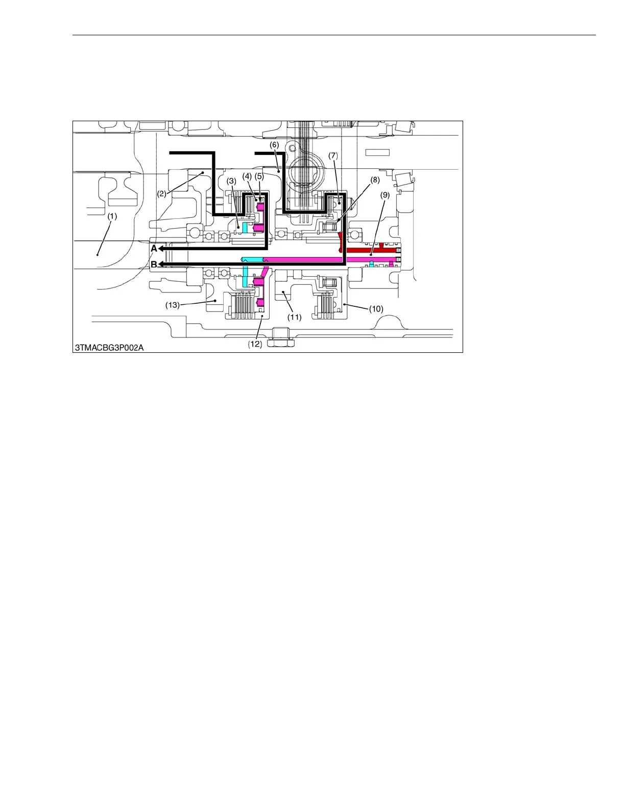 • The 4WD piston (4) engage to 4WD mode by spring (5) tension force and maintain the 4WD mode.