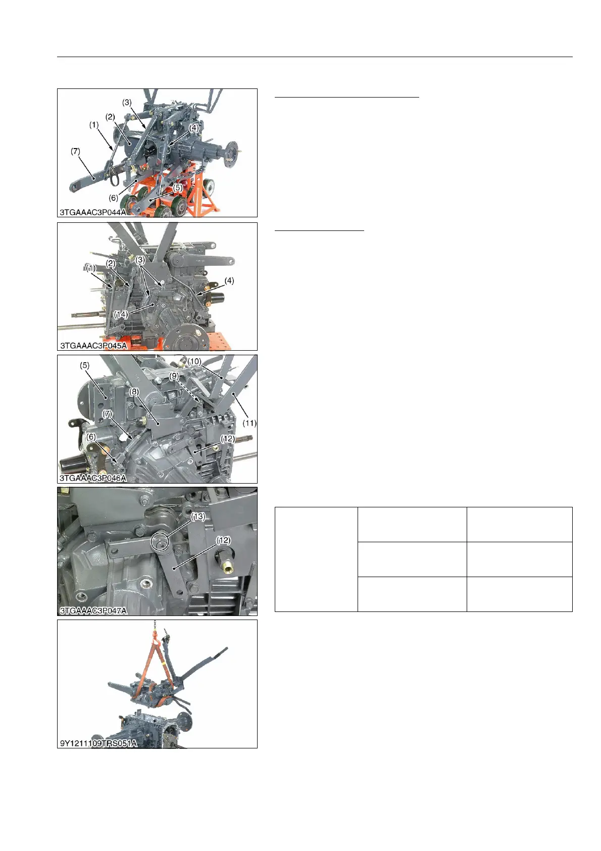 1. Remove the front drive rod (1), range gear shift rod (2) and mid