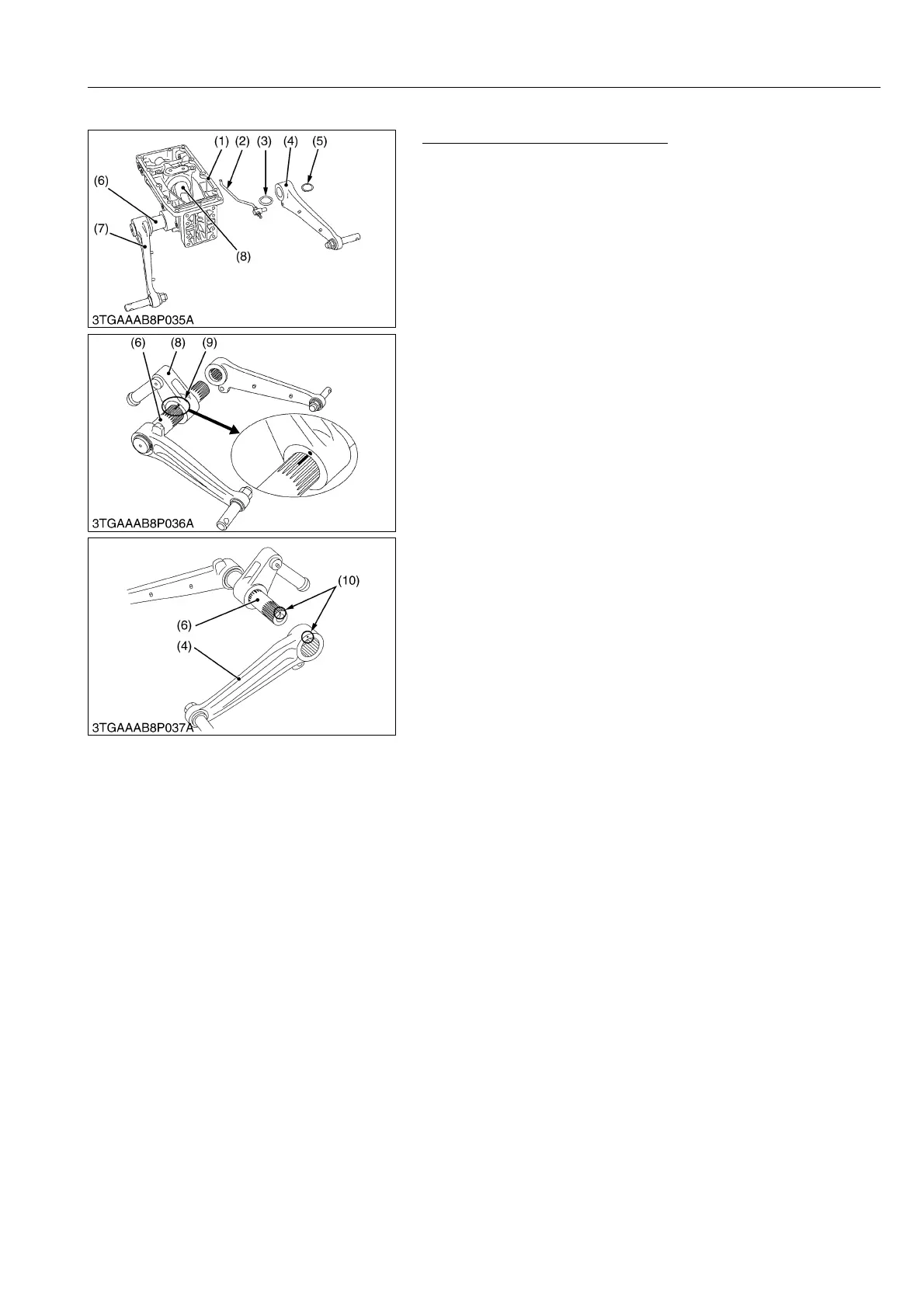 3. Pull out the lift arm R.H. (7) and hydraulic arm shaft (6) as a unit.